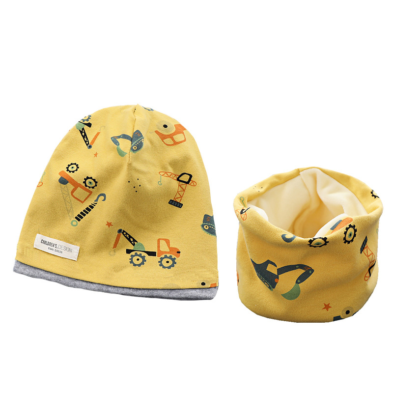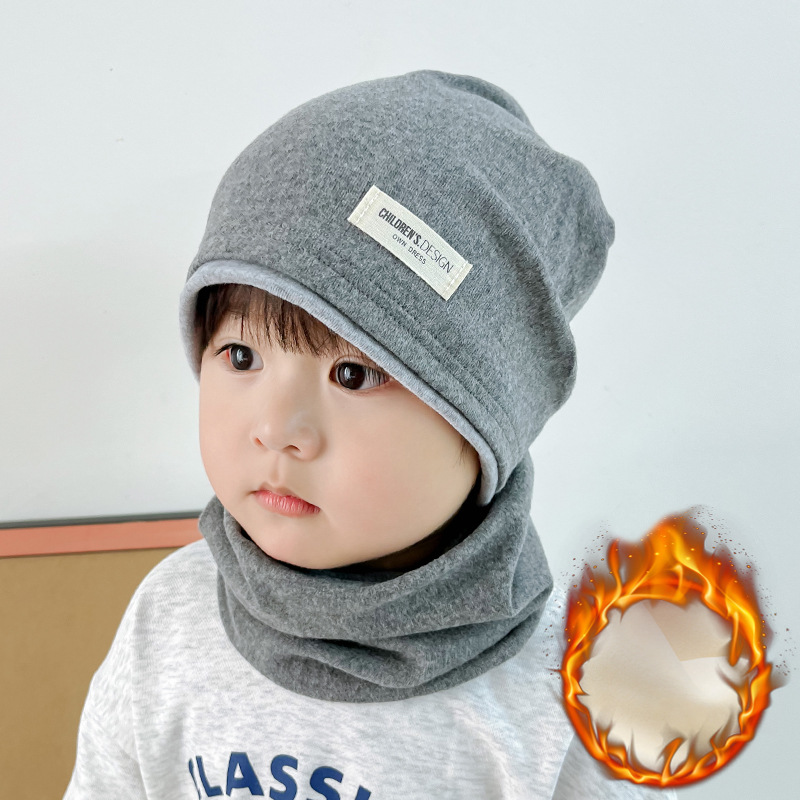 | nameOriginal | Set plus velvet contrasting color pile cap scarf 2-piece set winter warm windproof baby cotton double-layer pullover cap |