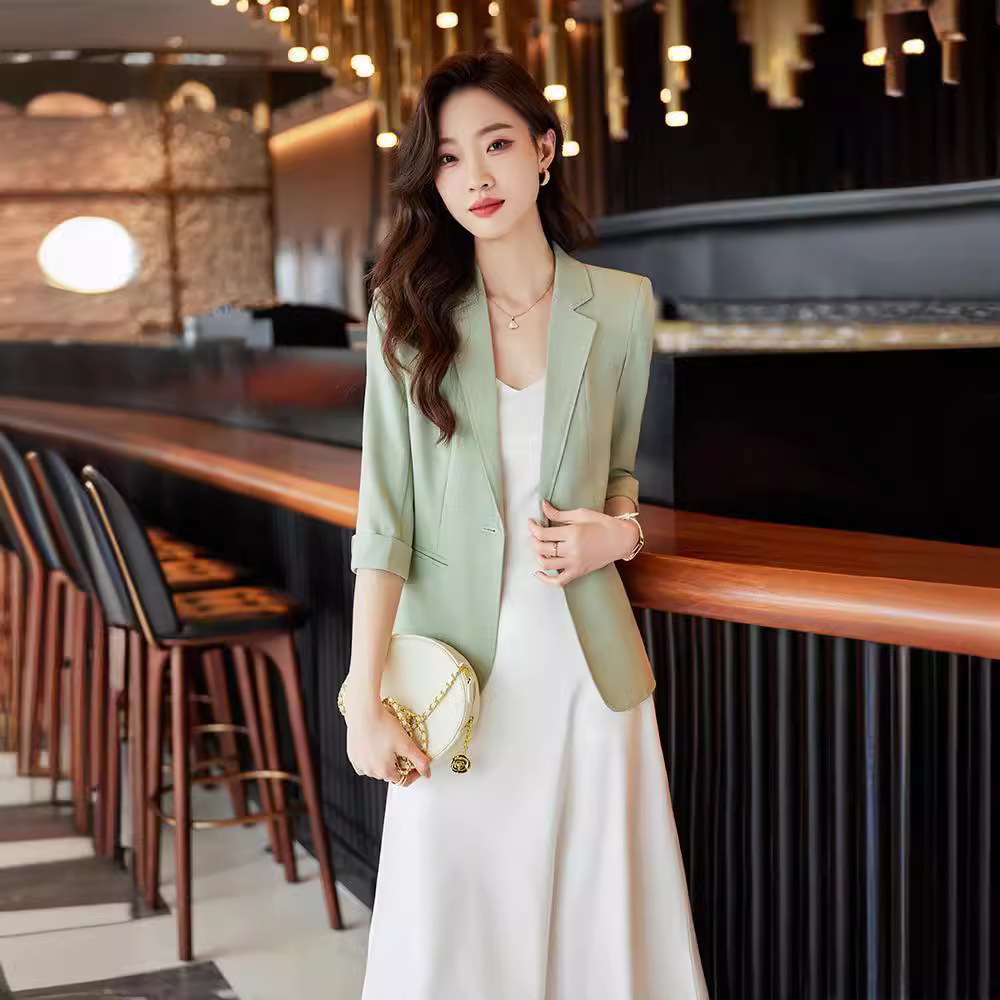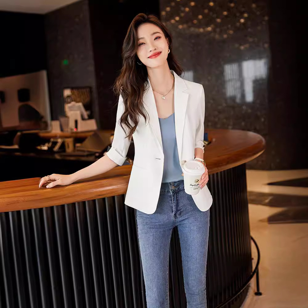 Seven-point Sleeve White Suit Jacket Women's 2023 Spring and Summer New Korean Style Retro Casual Slimming Small Suit Top