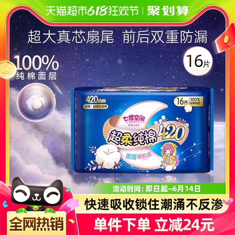 | nameOriginal | Seventh Space sanitary napkin, women's extra long 420 night use, ultra-thin pure cotton plus size aunt napkin 16 pieces for a peaceful sleep |