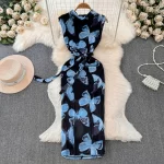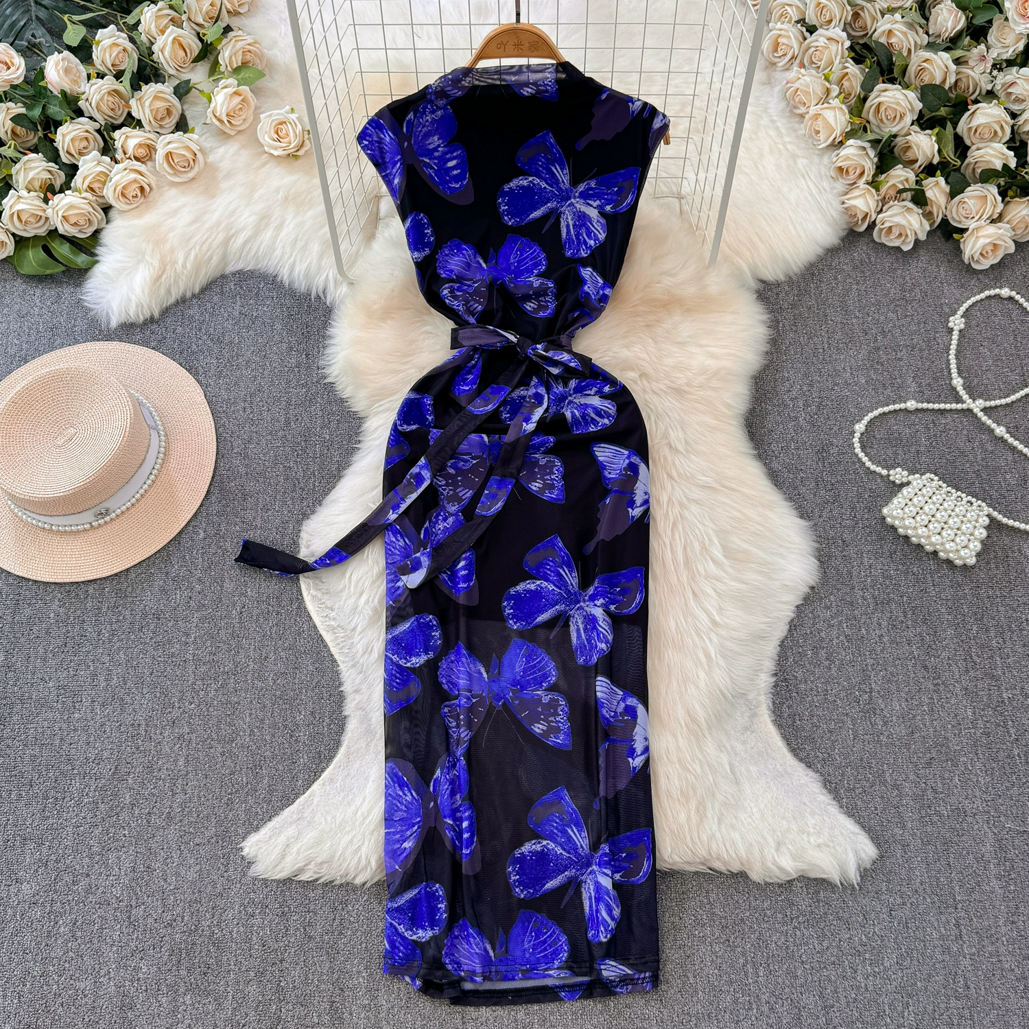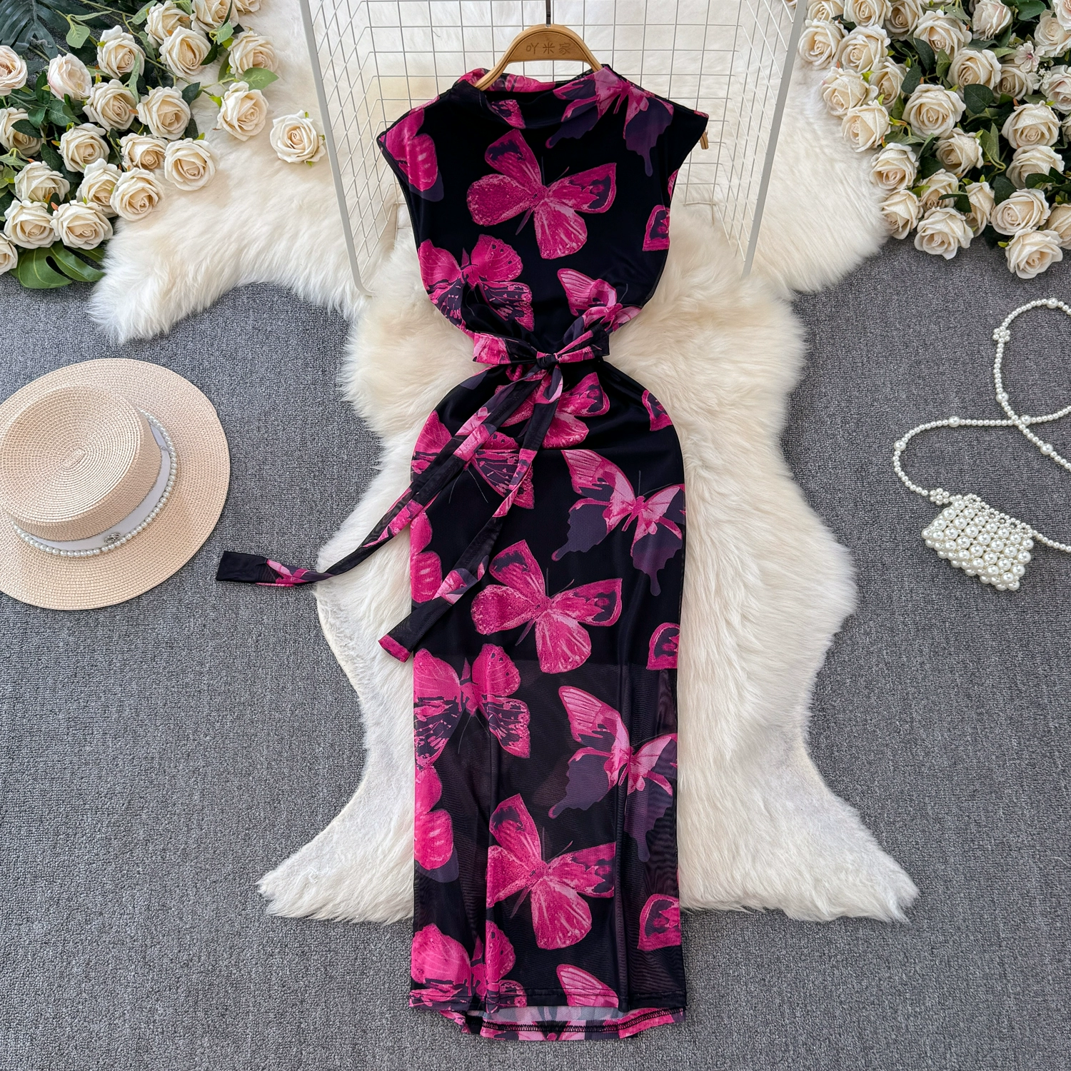 | nameOriginal | Sexy and elegant mesh print dress, feminine, French style, waist-slimming, body-showing mid-length hip-covering skirt, trendy |