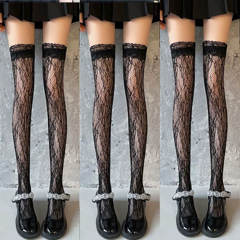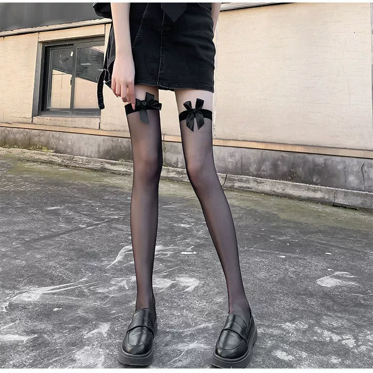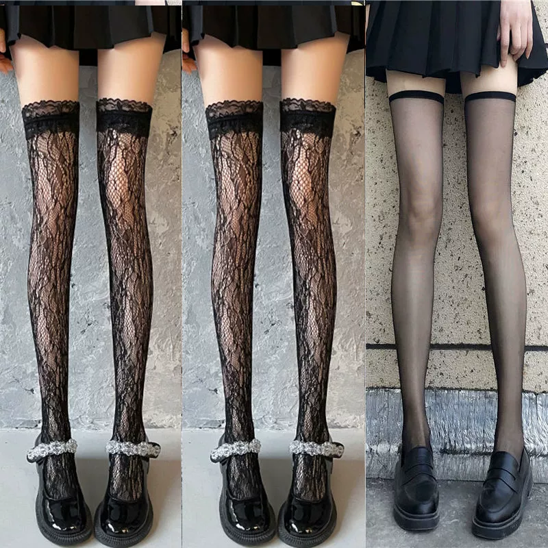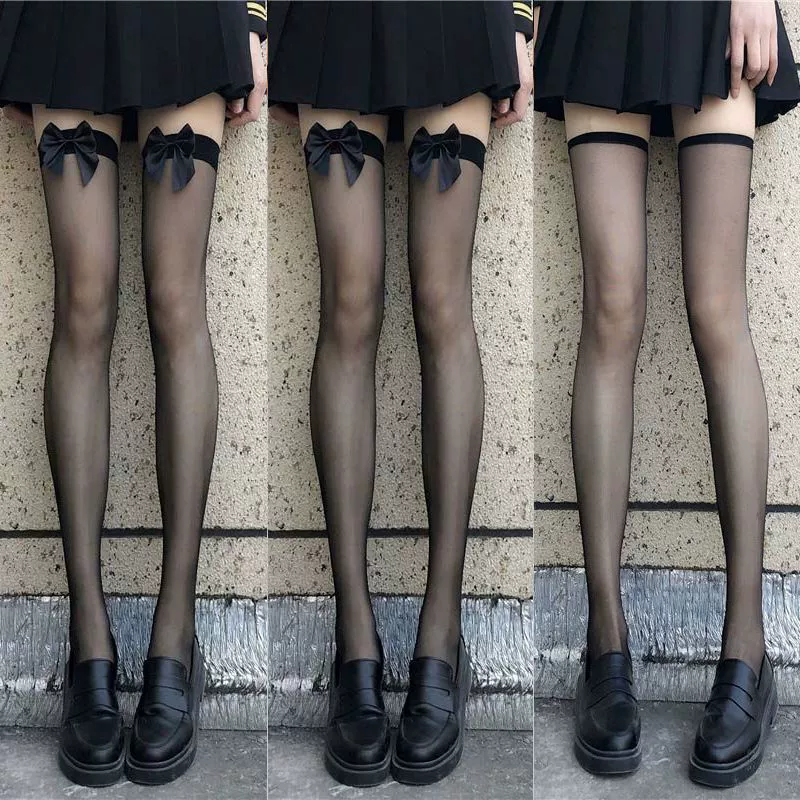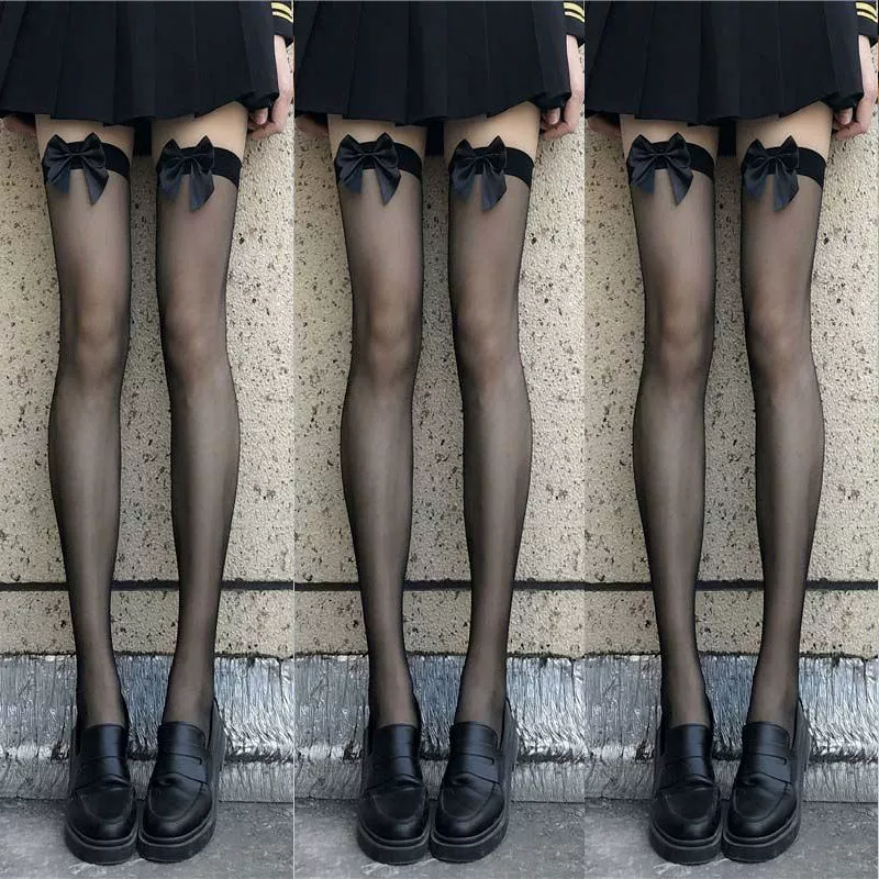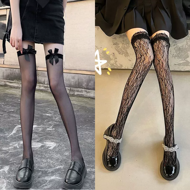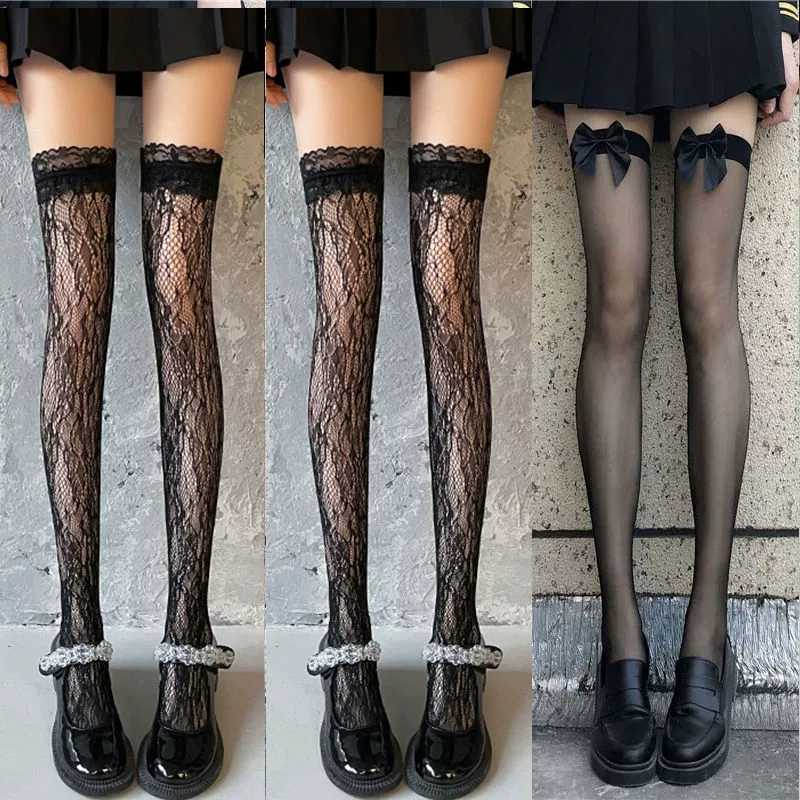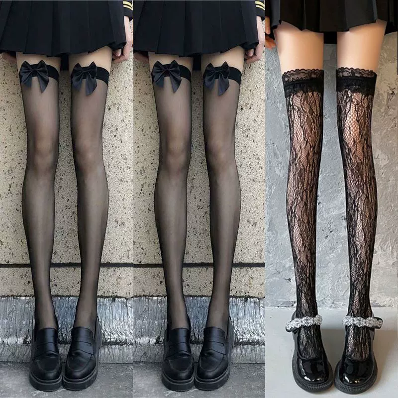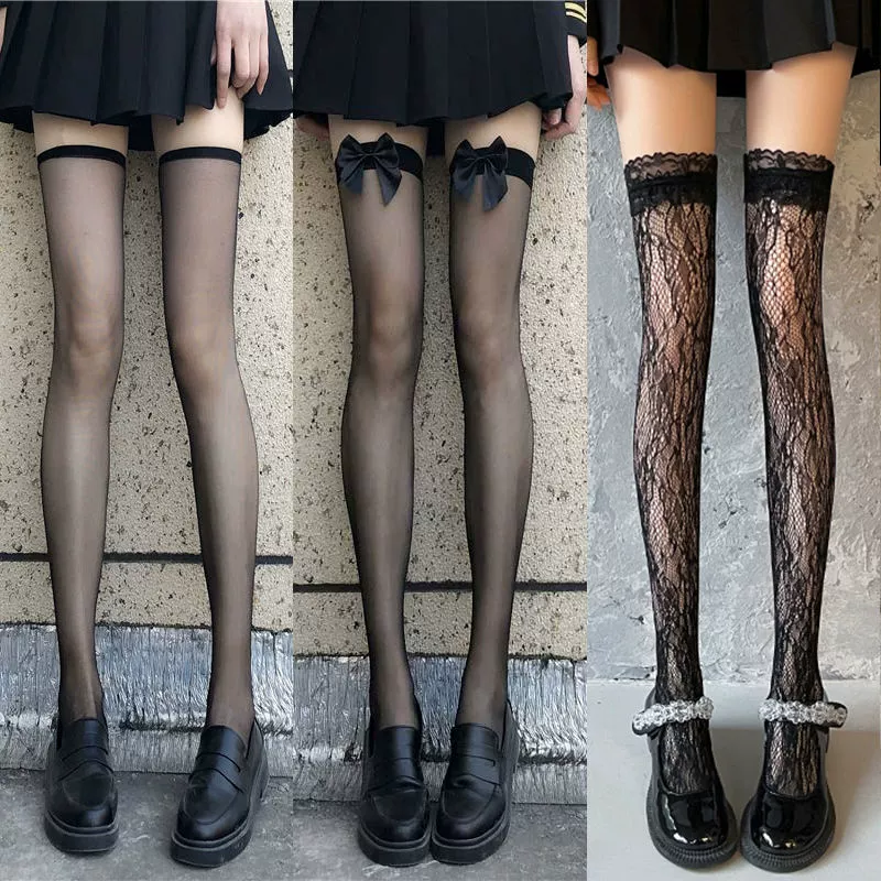 | nameOriginal | Sexy black silk women's ultra-thin lace over-the-knee socks Japanese stockings jk black bow stockings thighs |