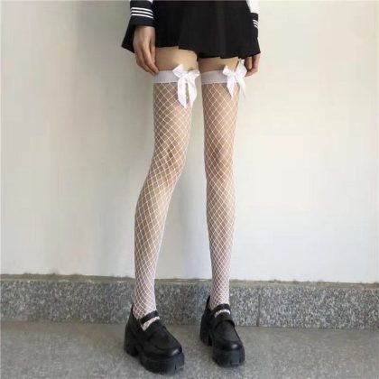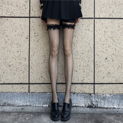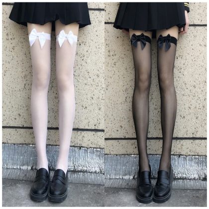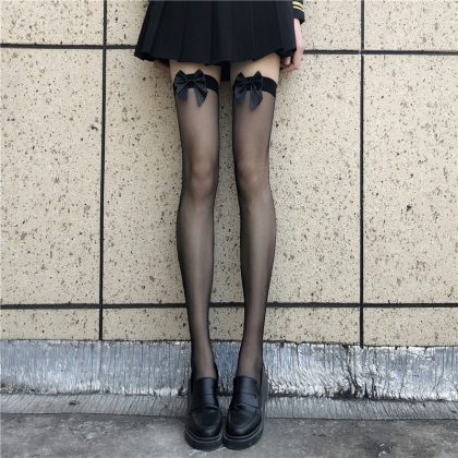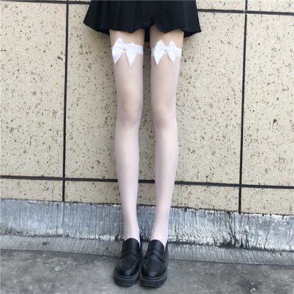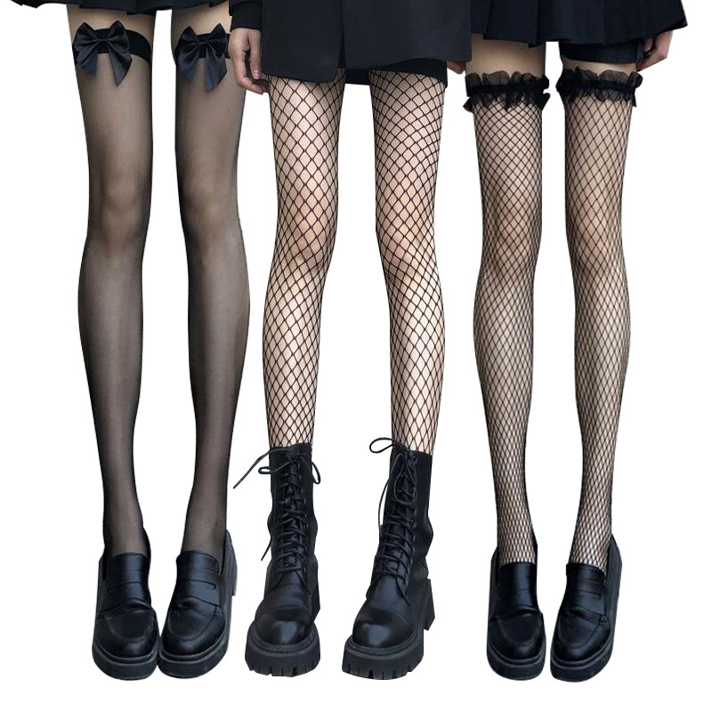 | nameOriginal | Sexy fishnet socks women's sexy black silk easy-to-tear socks thin pantyhose lace bow lace long tube knee socks |