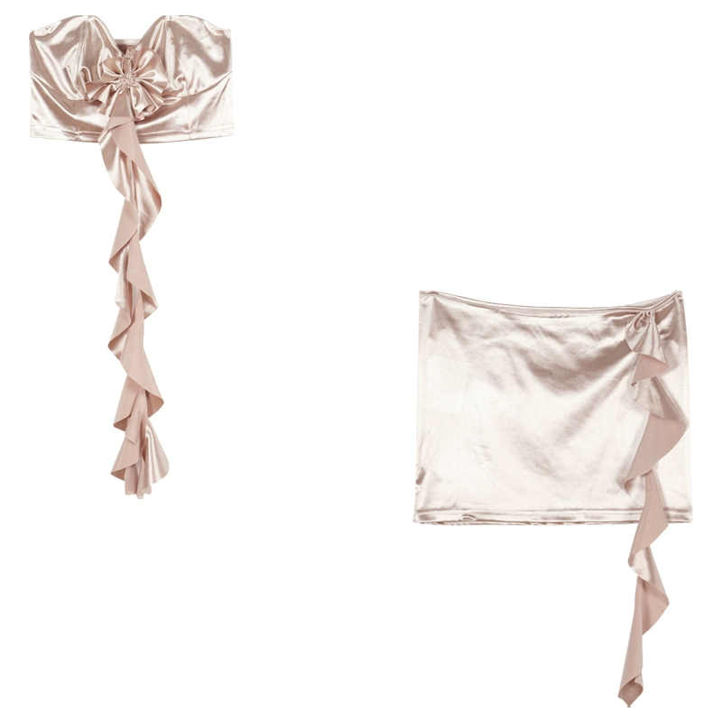 | nameOriginal | Sexy flower tube top hip skirt two-piece satin set |