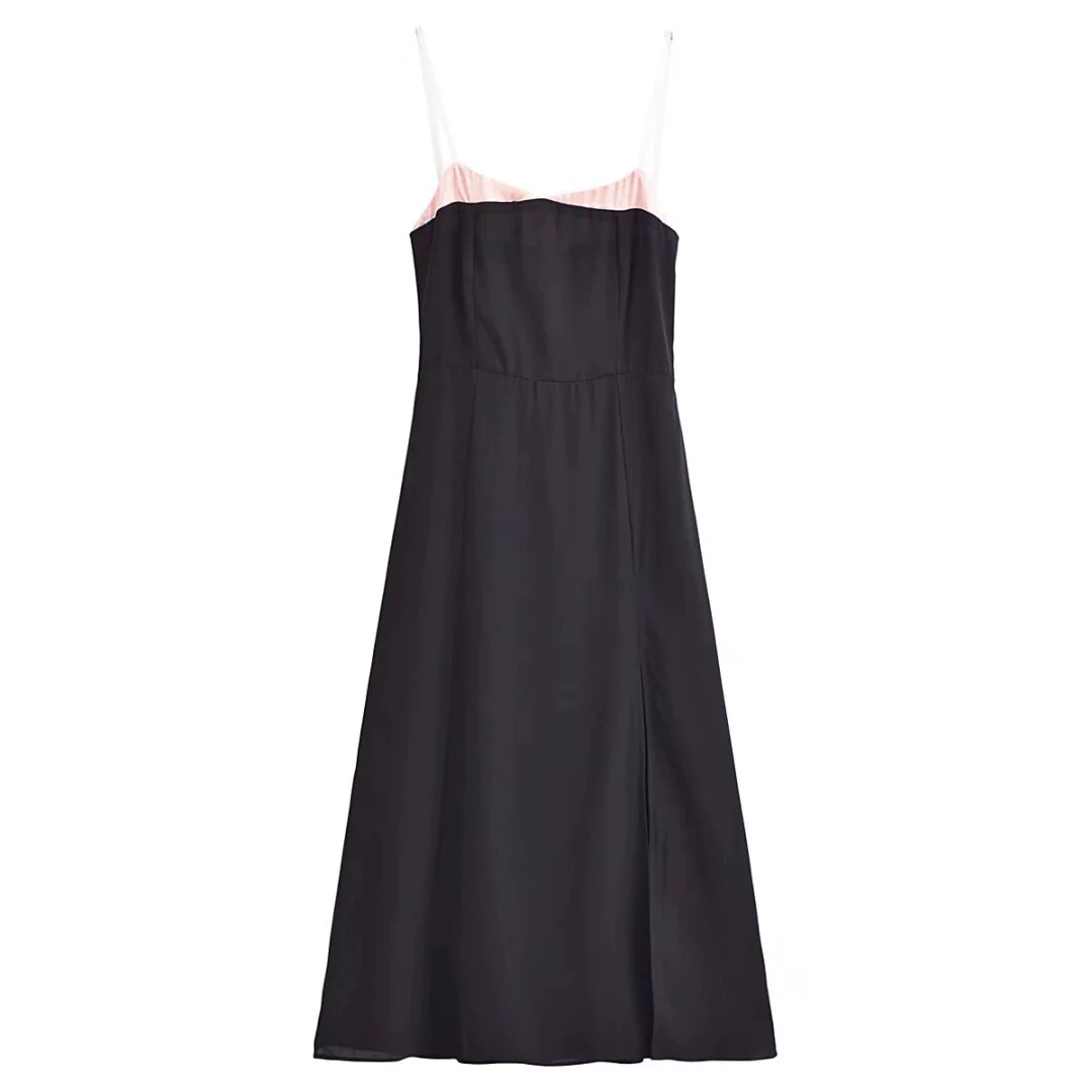 Sexy high-waist slim suspender dress with contrasting color stitching