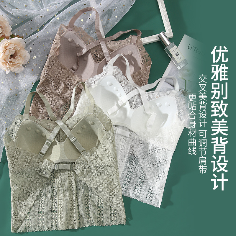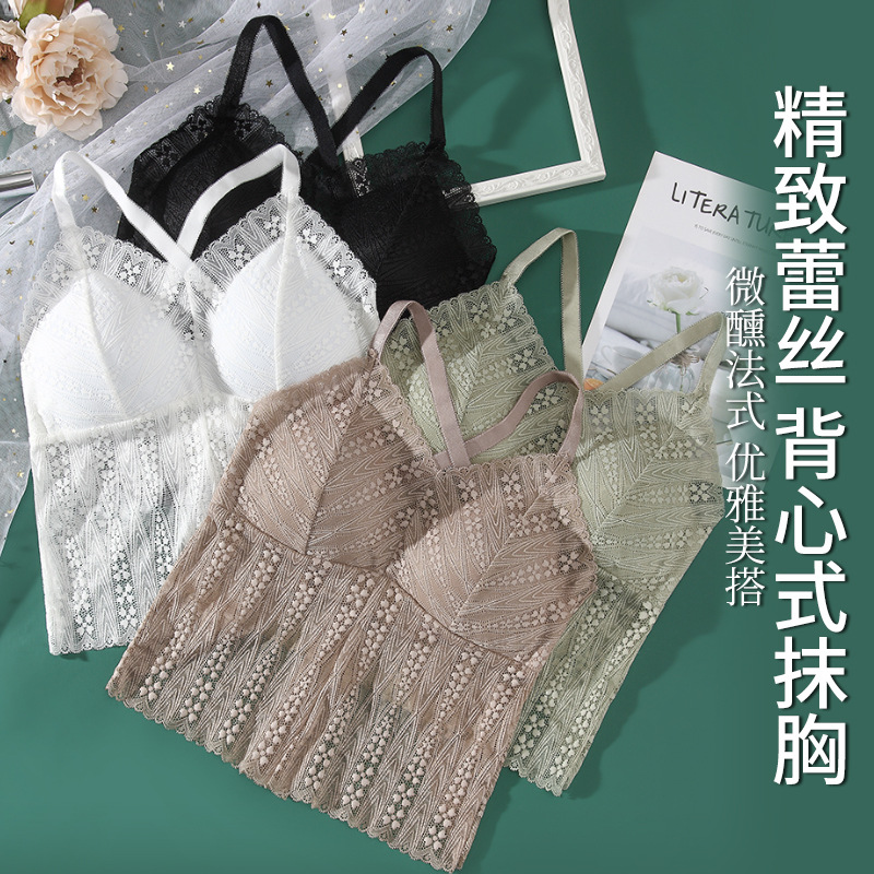 Sexy lace French style one-piece latex cup beauty back camisole adjustable backless inner wear outer wear tube top underwear