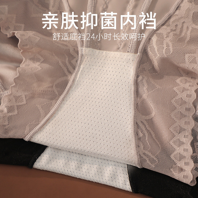 Sexy Lace Stitching High Waist Shaping Pants Silk Bottom Breathable Comfortable Underwear Women's High Elastic Belly-Tight Briefs for Women