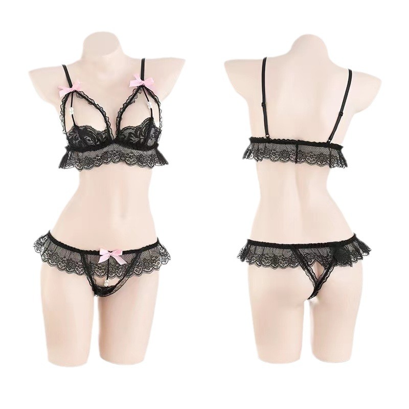 | nameOriginal | Sexy Lingerie Sexy Three-point Lace Pajamas Pure Desire Small Chest Split Bow Shew Pajamas Set |