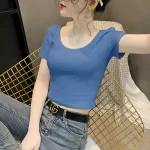 Sexy low-neck slim-fitting T-shirt for women with versatile short sleeves