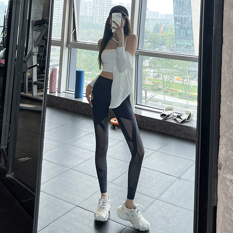 Sexy mesh high-waist butt-lifting tight thin yoga pants