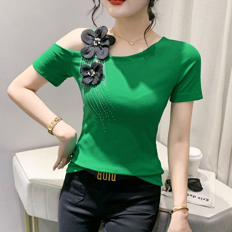 | nameOriginal | Sexy off-shoulder T-shirt women's short-sleeved 2024 summer new style fashionable design top tight-fitting versatile shirt half-sleeved |