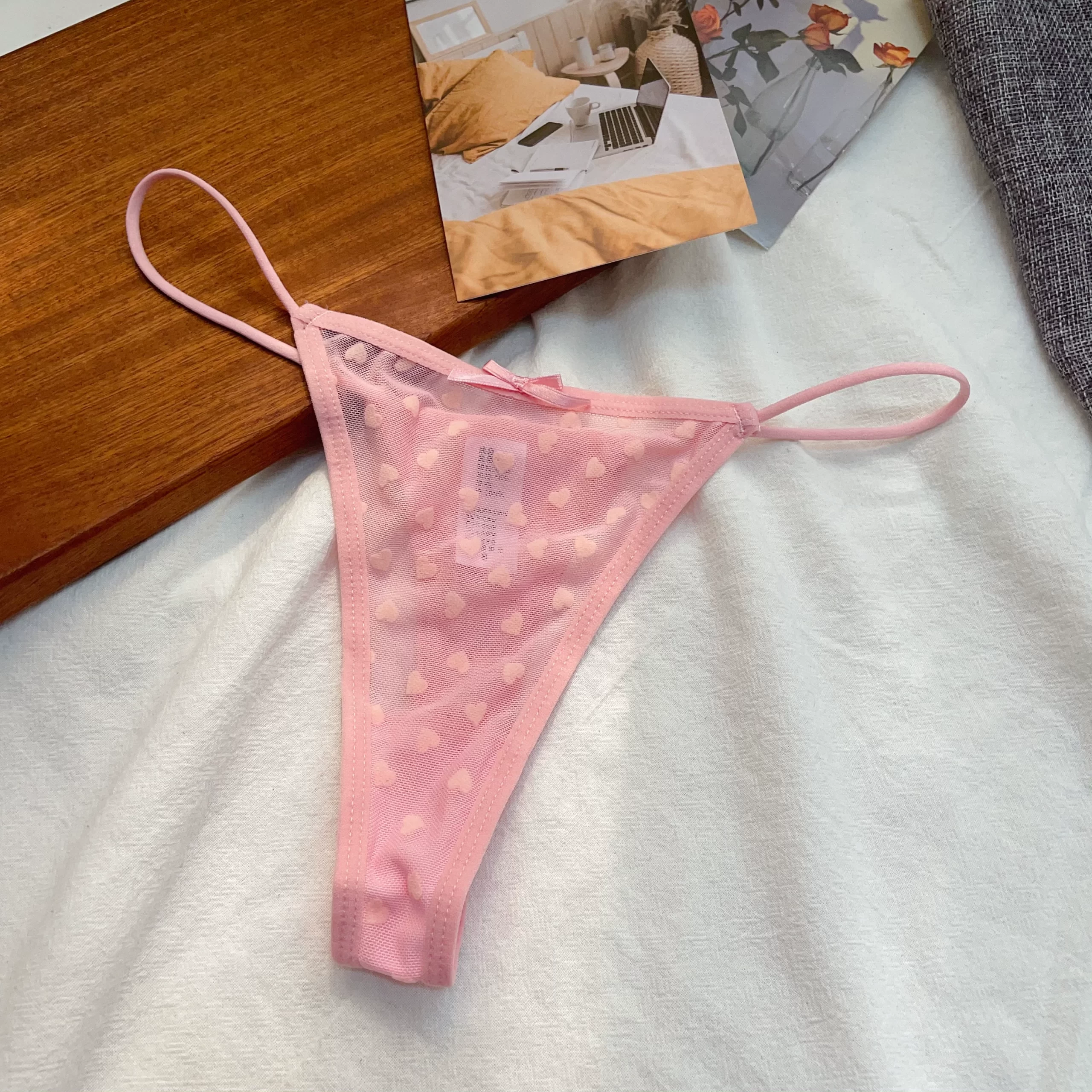 | nameOriginal | Sexy one rope thong women's thin love thin seductive pure desire T pants low waist European and American underwear semi-transparent high fork |
