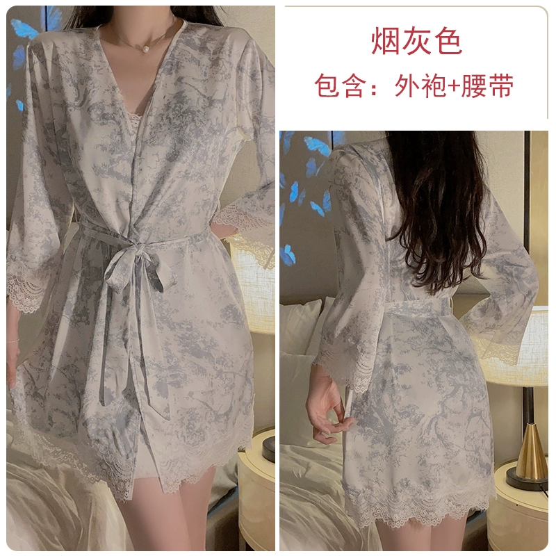 | nameOriginal | Sexy Pajamas for Women Spring Autumn and Summer Sexy Ice Ribbon Breast Pad Lace Printed Nightgown Suspender Nightgown Home Clothing Set |