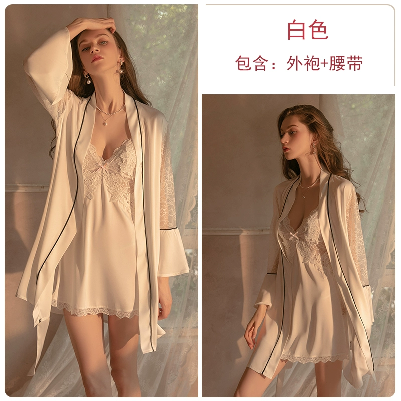 | nameOriginal | Sexy Pajamas for Women Summer Ice Silk Thin Style with Breast Pad Large Size 2022 New Lace Backless Autumn Sling Nightgown |