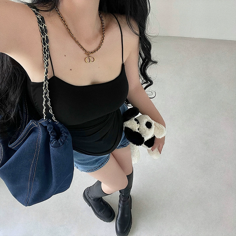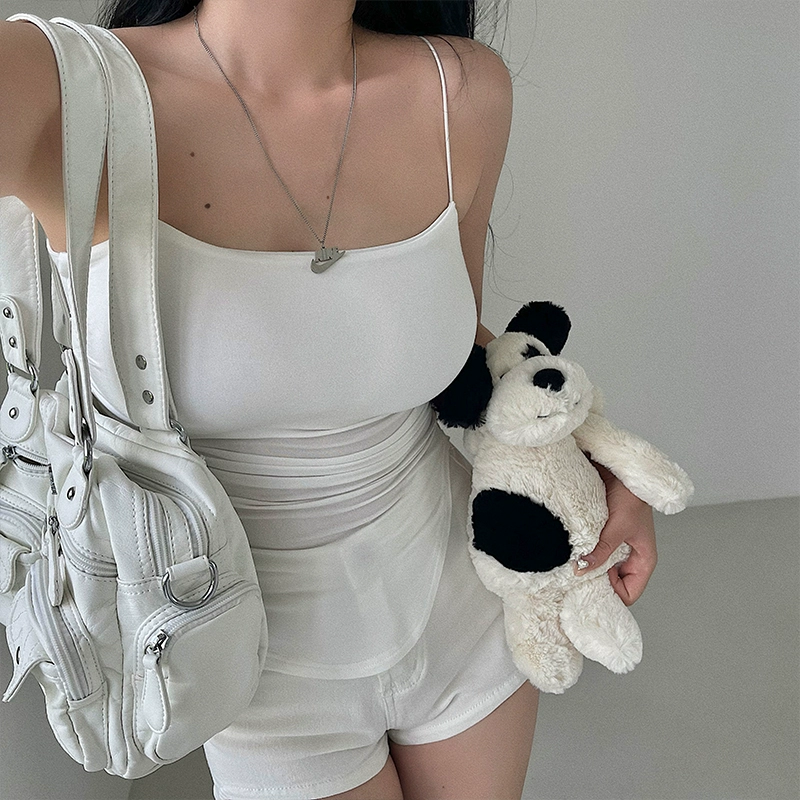 Sexy pleated curved hem with padded spaghetti straps