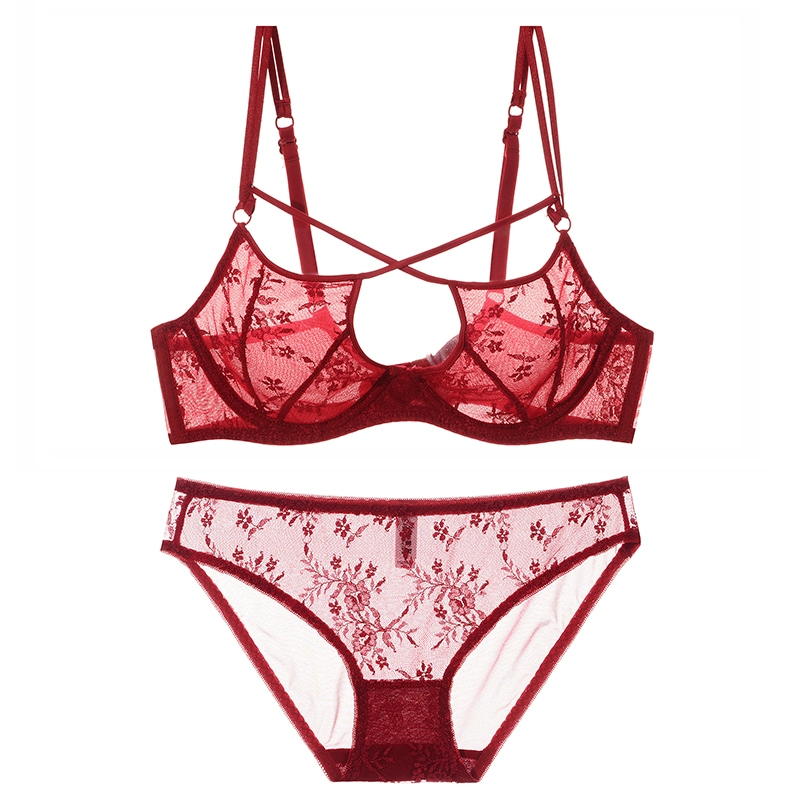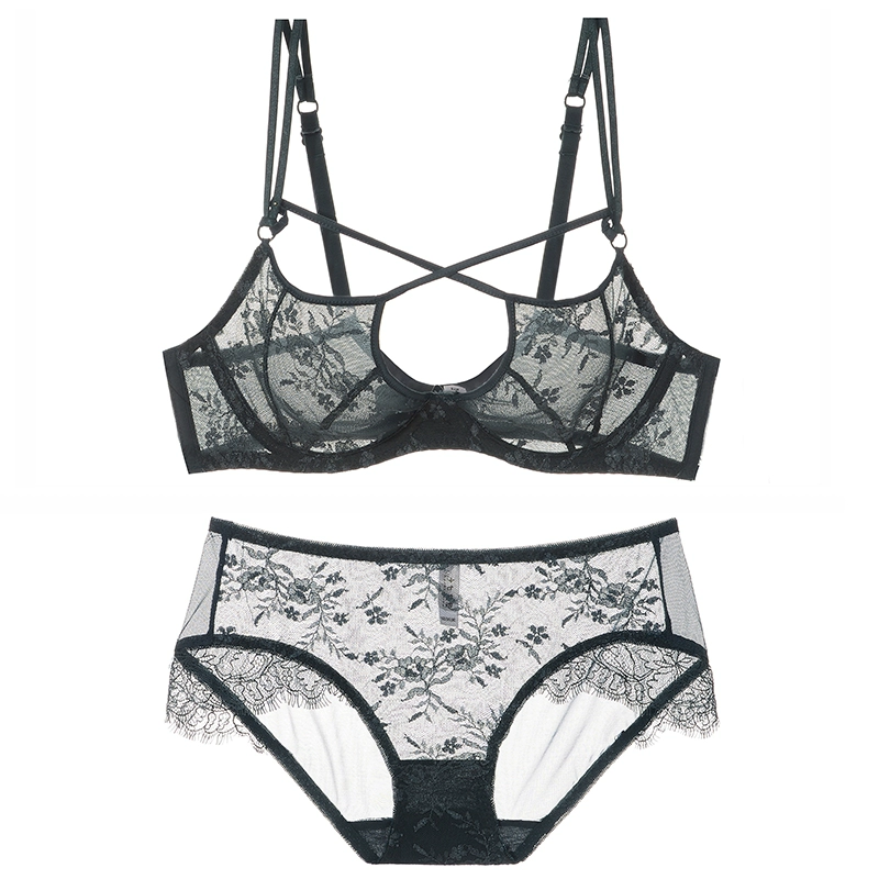 | nameOriginal | Sexy pure lust lace women's underwear, ultra-thin transparent mesh bra set, large size bra, thong |