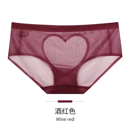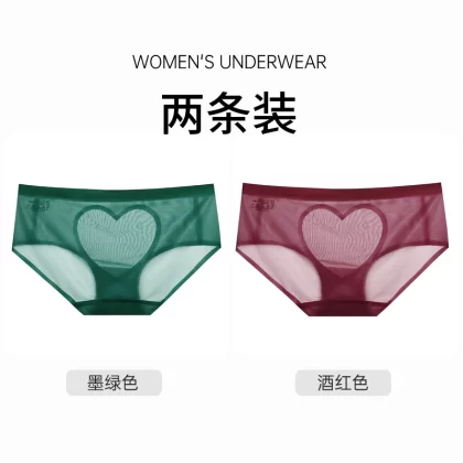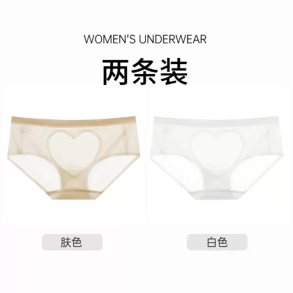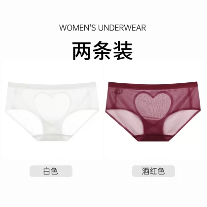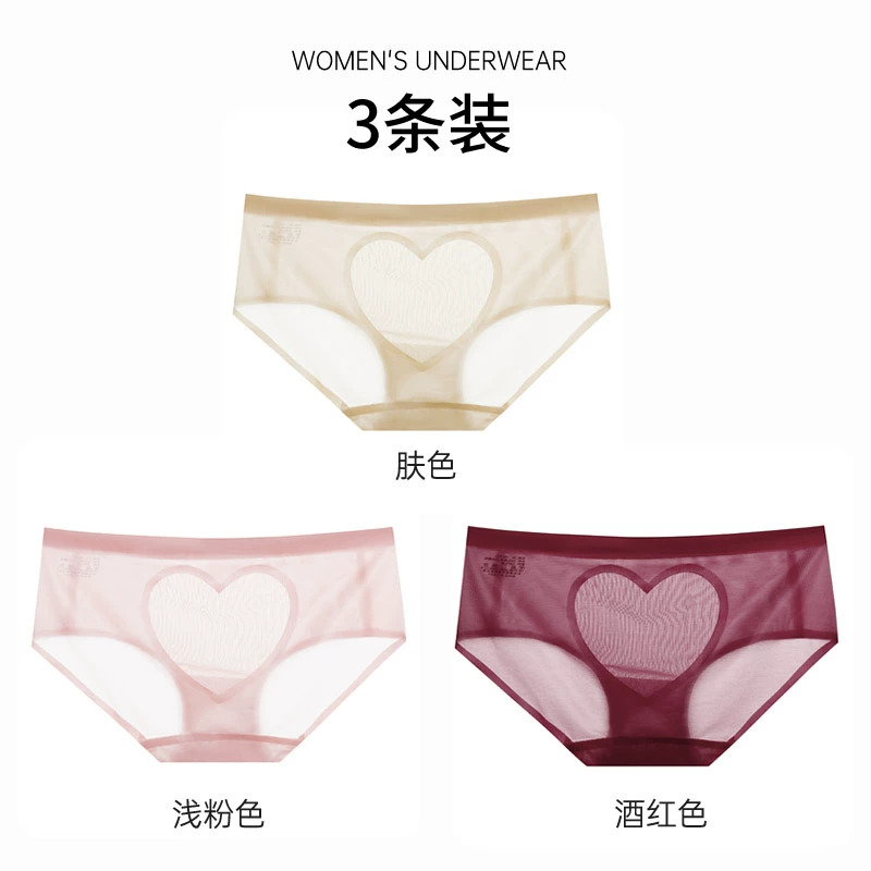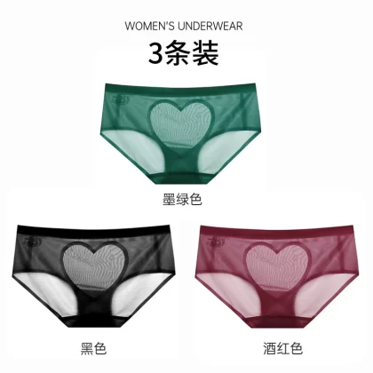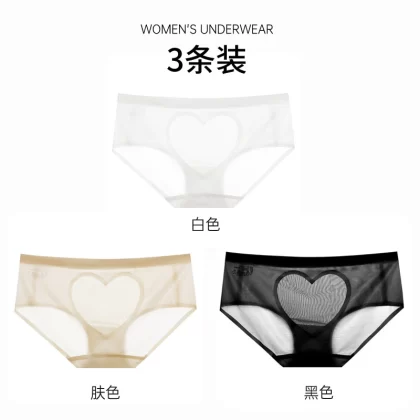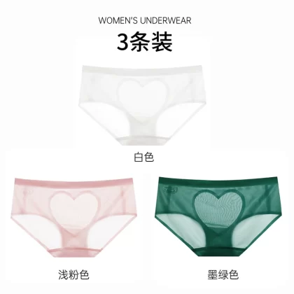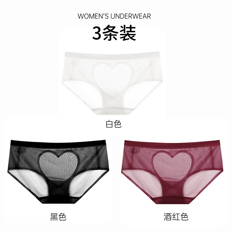 | nameOriginal | Sexy satin love hollow transparent lace panties women's pure cotton crotch breathable mid-low waist hip-covering seamless briefs |