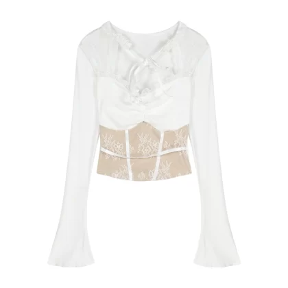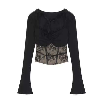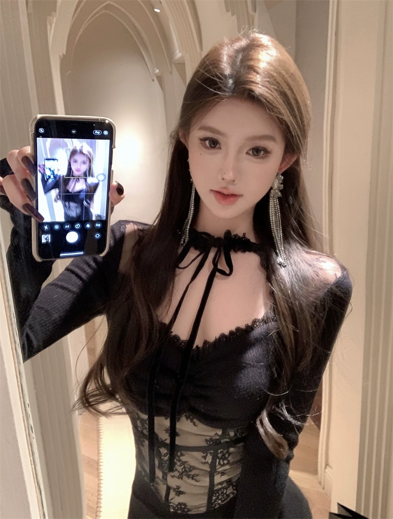| nameOriginal | Sexy short herringbone long-sleeved sweater with lace stitching |