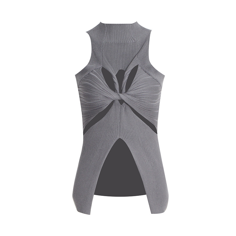 | nameOriginal | Sexy Spice Girl Fashionable Style 2024 Summer New Style Vertical Collar Sleeveless Front Personality Hollow-out Design Slim-fit Irregular Vest |