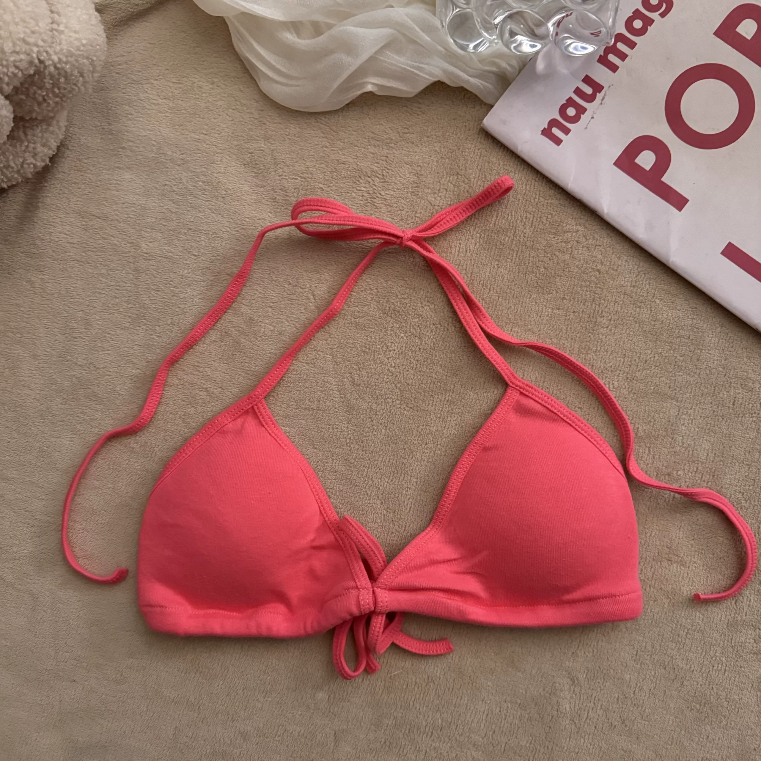 | nameOriginal | Sexy strap design halter neck underwear for women summer triangle cup with beautiful back bikini short bra top |
