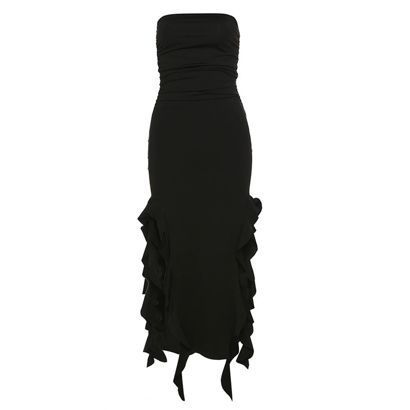 | nameOriginal | sexy strapless dress European and American style one-shoulder strapless dress with hip and slim irregular tassel dress |