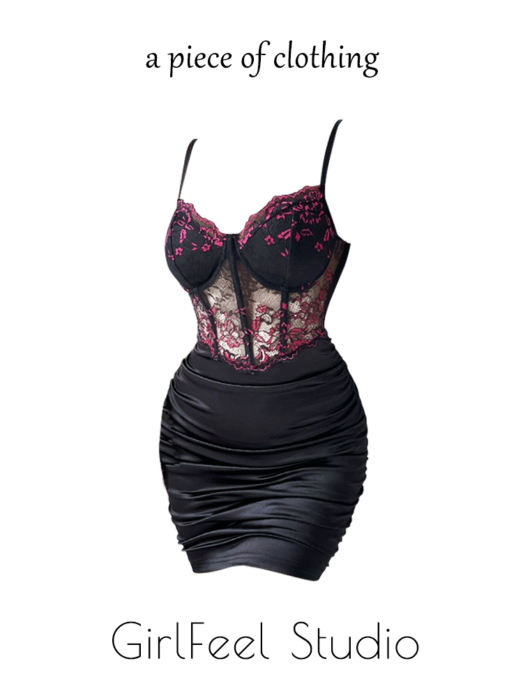 | nameOriginal | Sexy suspender dress summer red hip-hugging lace |