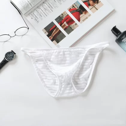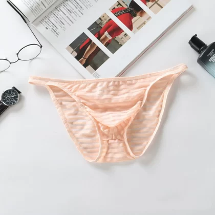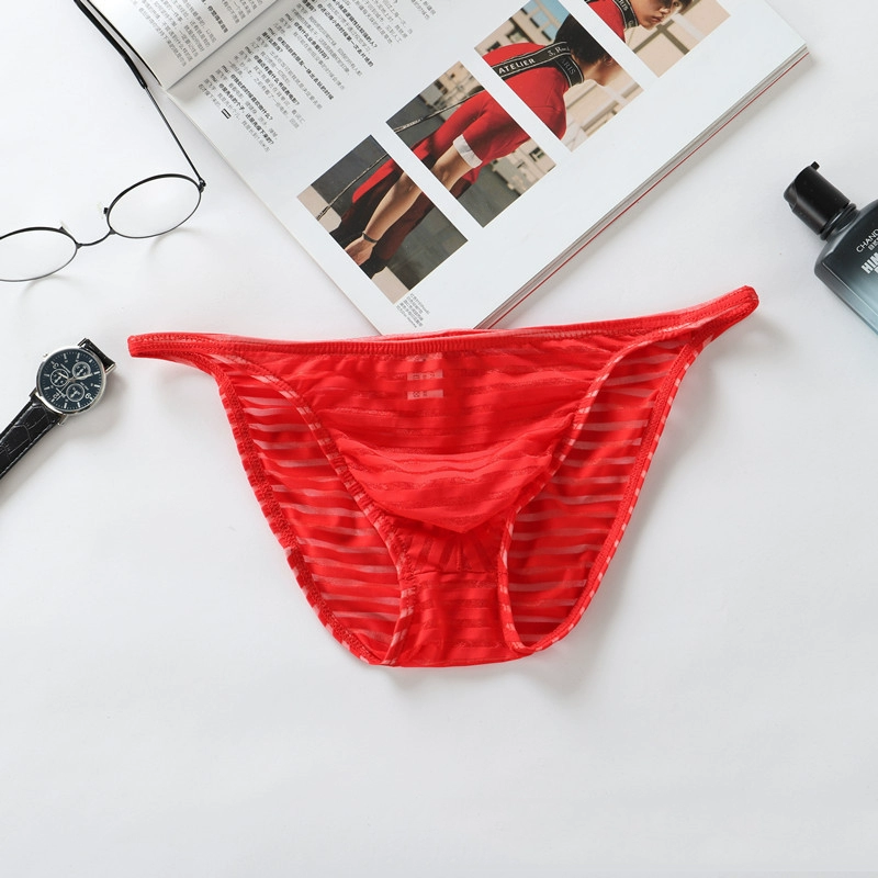 Sexy thin edge ultra-thin ice silk striped mesh underwear