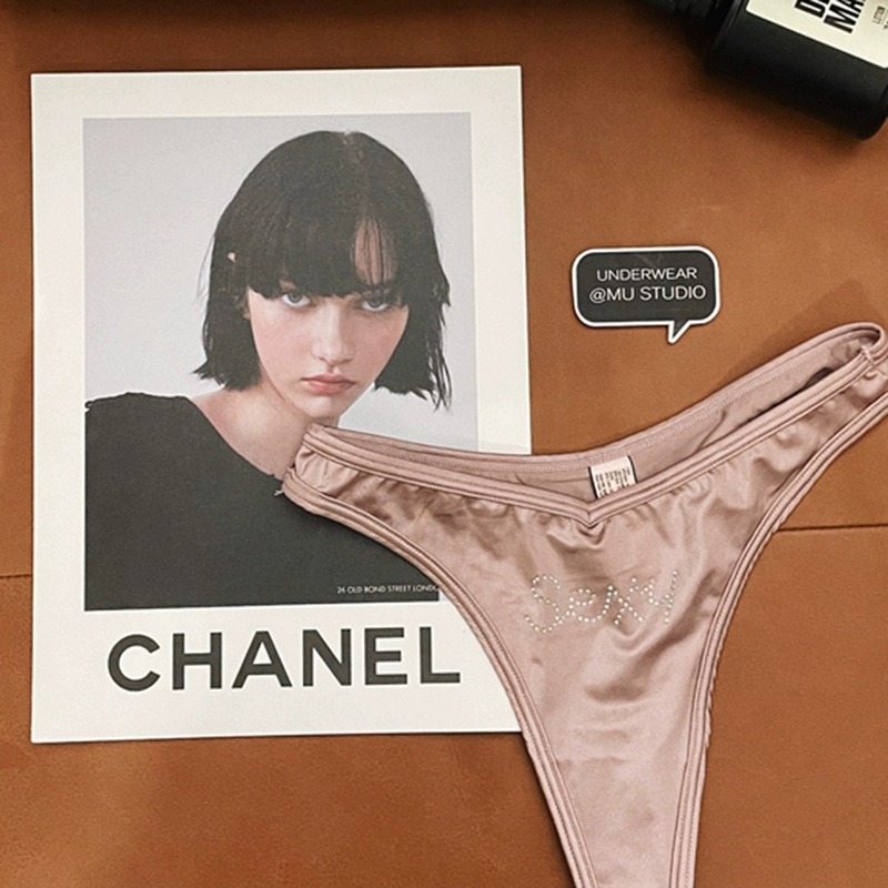| nameOriginal | Sexy thong satin hot diamond letter T pants ice silk seamless pure lust hot girl rhinestone bikini European and American underwear |