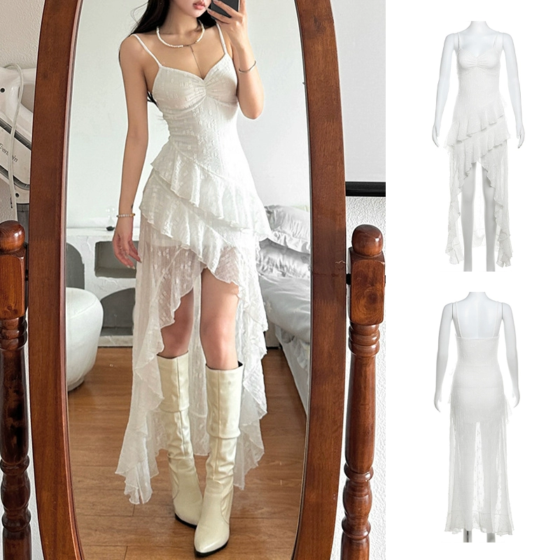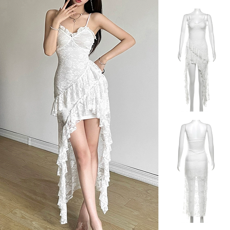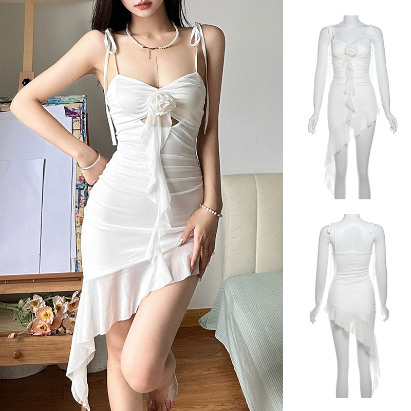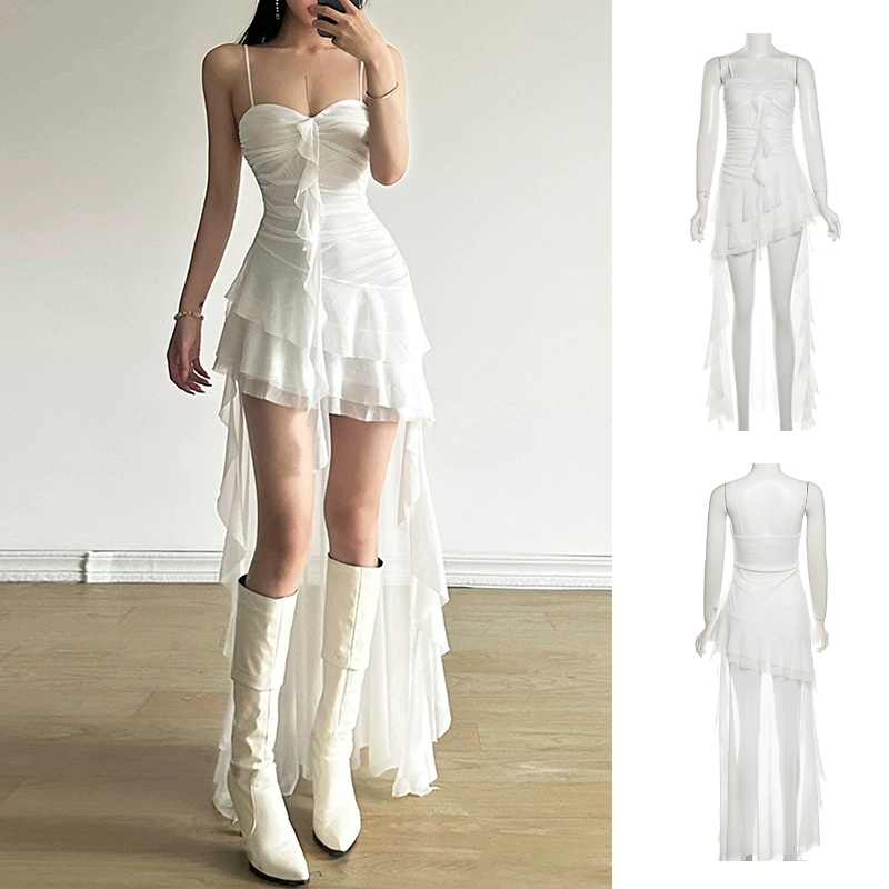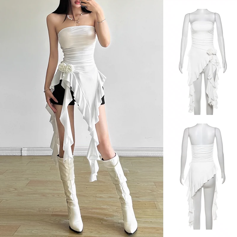 Sexy tube top irregular girl group white skirt suspenders