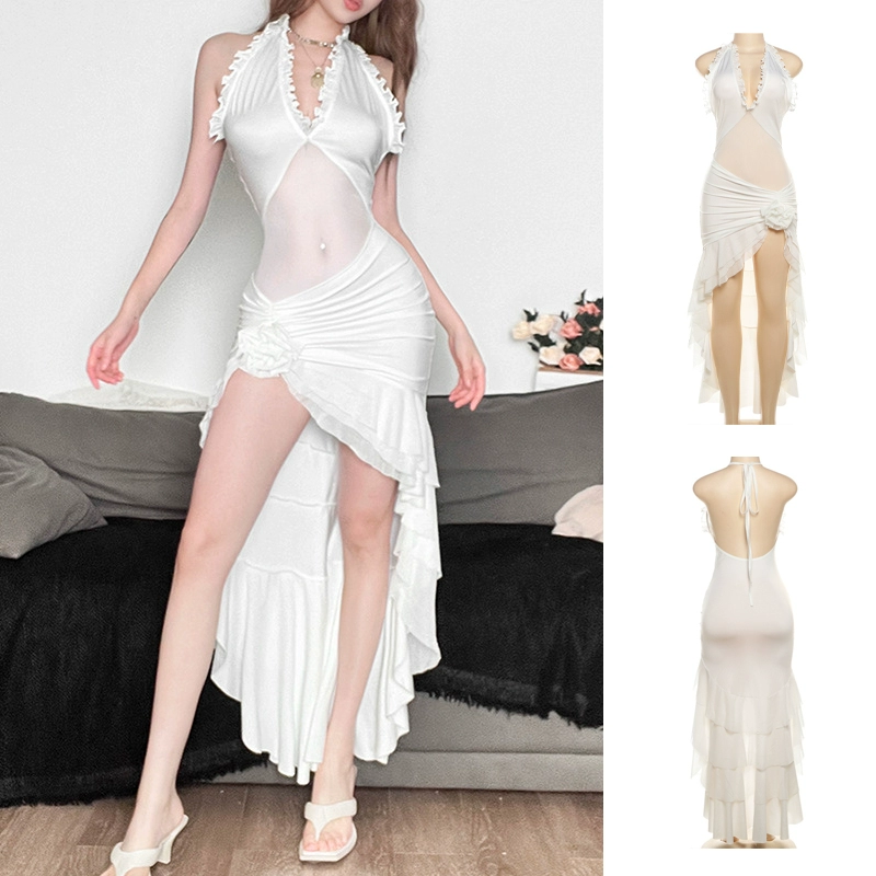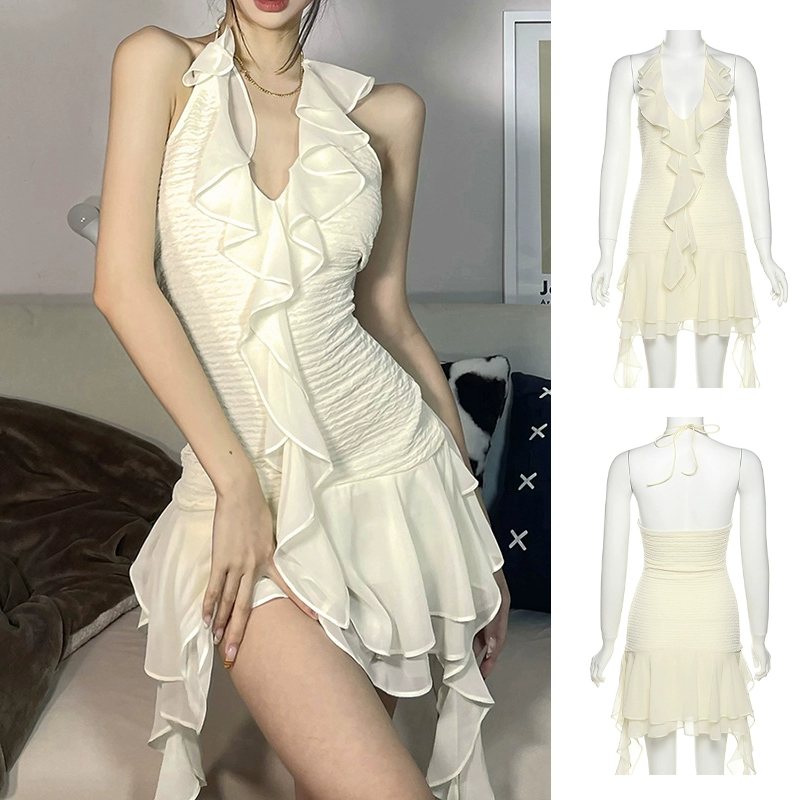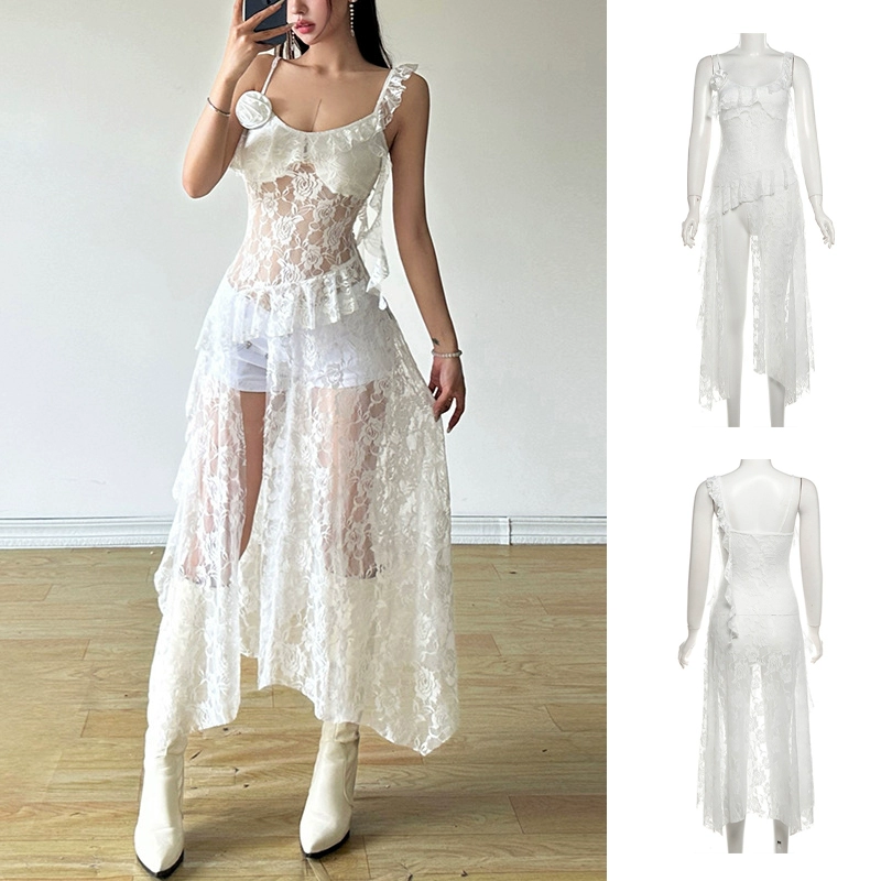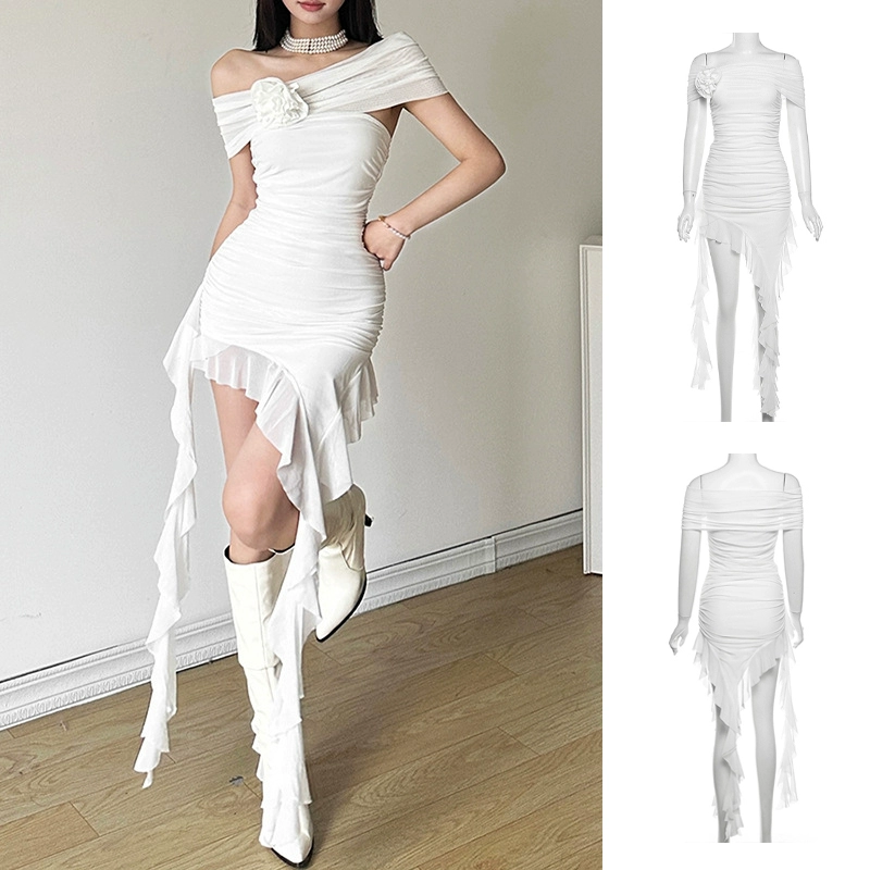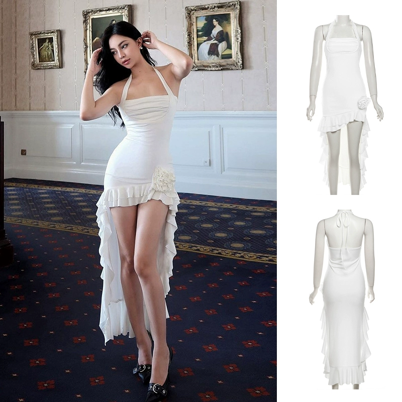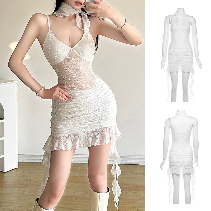 Sexy tube top irregular girl group white skirt suspenders