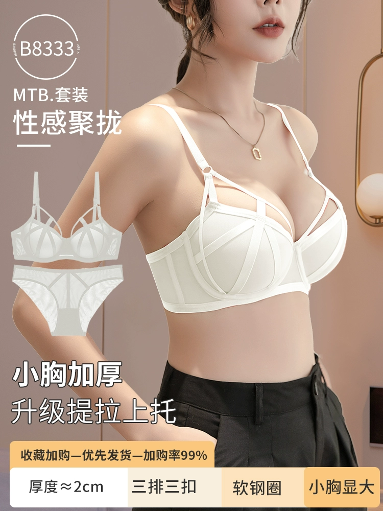 Sexy underwear for women with small breasts gathering to make them look bigger new 2023 hot set thickened flat chest bra black