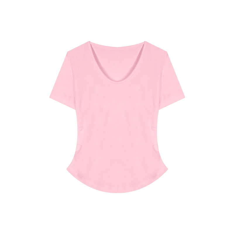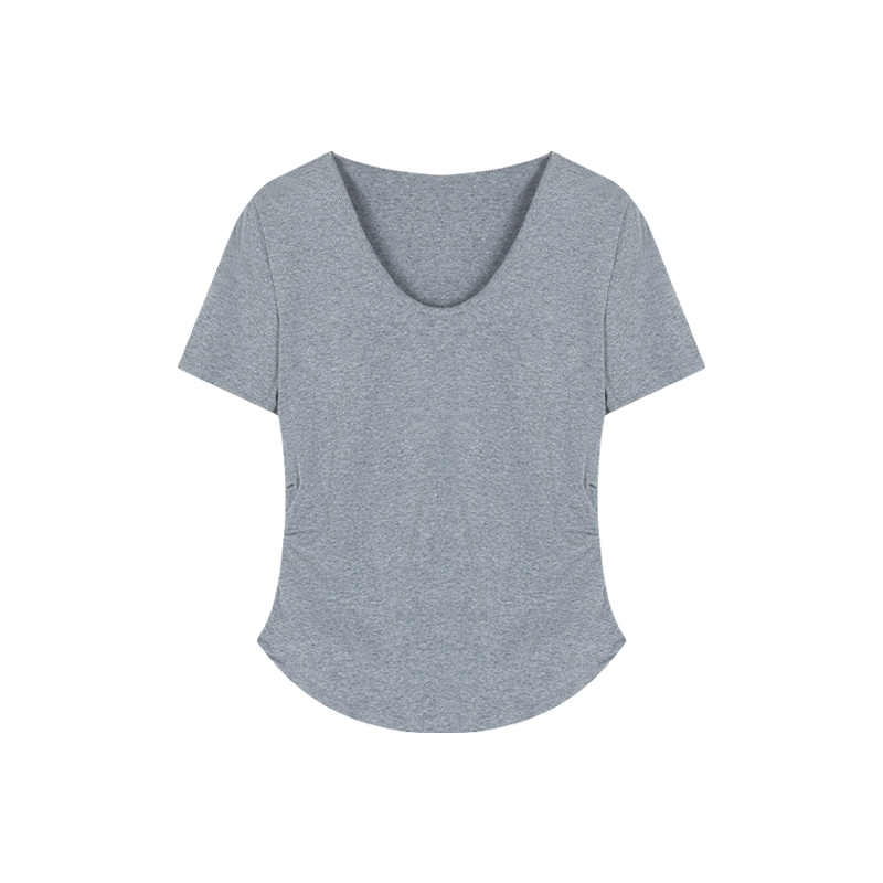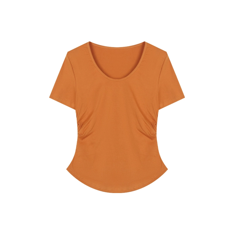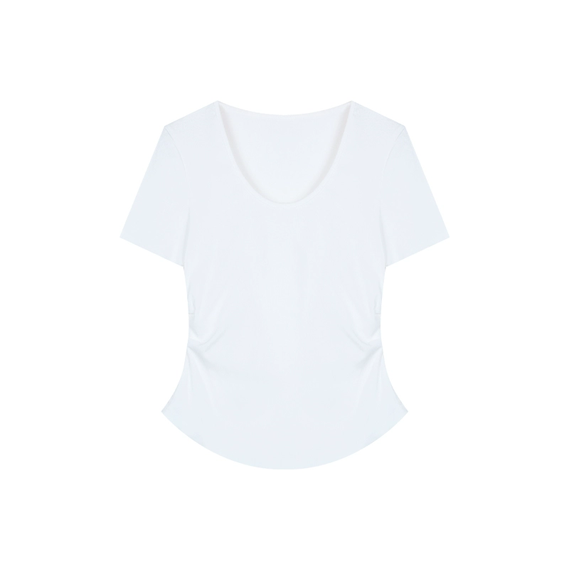 Sexy V-neck right shoulder summer smocked waist short-sleeved T-shirt