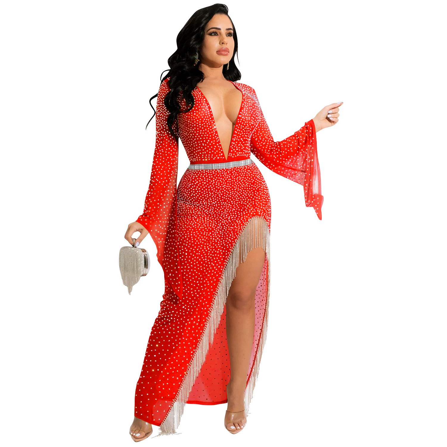 | nameOriginal | Sexy wide-sleeved irregular flowing beard dress with hot rhinestones |