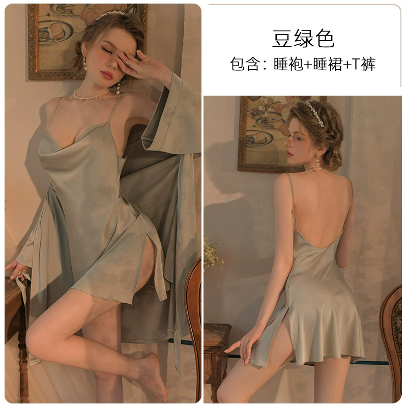Sexy women’s pajamas 2024 summer slit ice silk suspender nightgown pure lust style two-piece suit thin style high-end