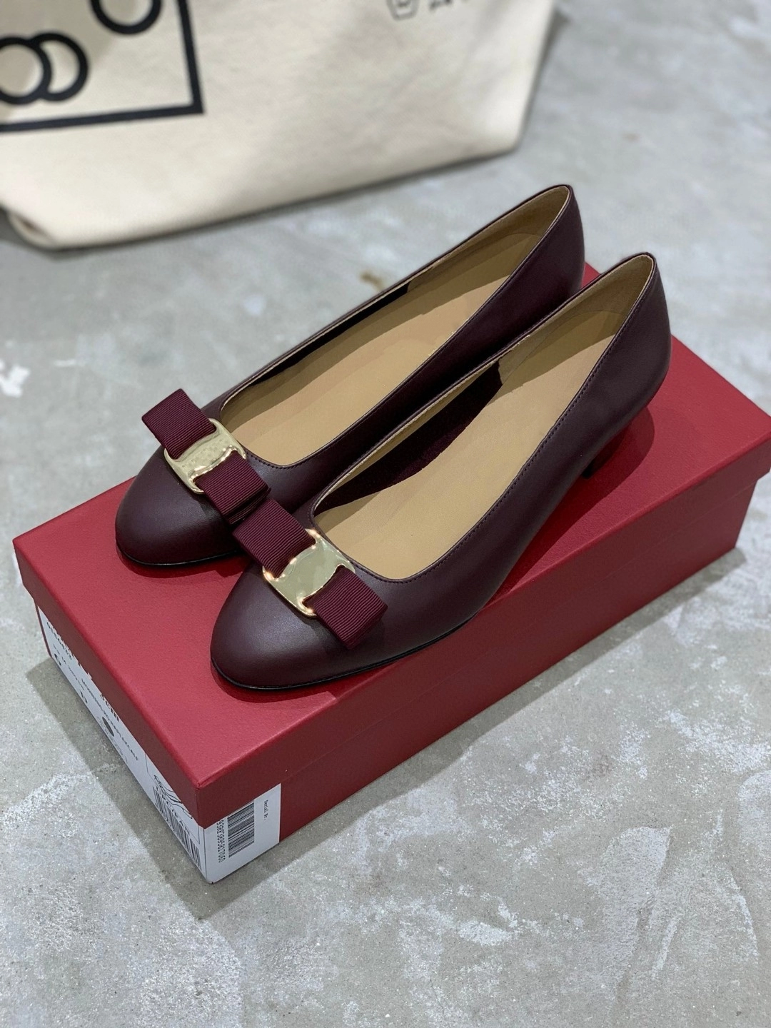 | nameOriginal | SF ballet shoes bow buckle mid heel solid color cowhide genuine leather large sole high heel round toe women's shoes shallow mouth work shoes |