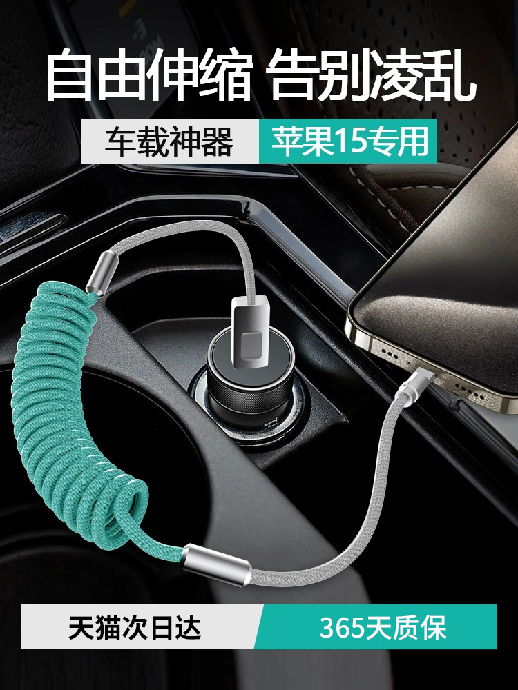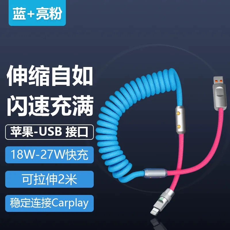 SF carplay car data cable spring retractable USB fast charging car Han Yi suitable for Apple Huawei Android iphone15pro mobile phone 14max3 charger cable Typec braided pd