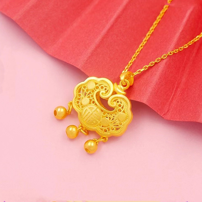 Shajin Children’s Lock Pendant Women’s Simple Gold Lock Necklace Sikim Dragon Year Bank Insurance TikTok Quick Hand Activity Gift