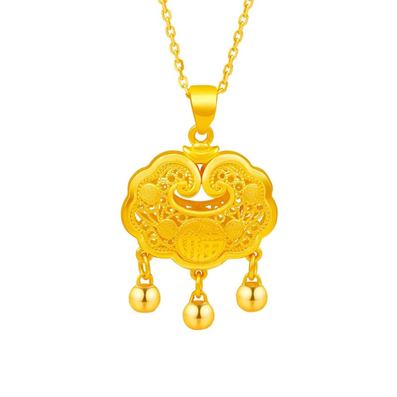 Shajin Children's Lock Pendant Women's Simple Gold Lock Necklace Sikim Dragon Year Bank Insurance TikTok Quick Hand Activity Gift