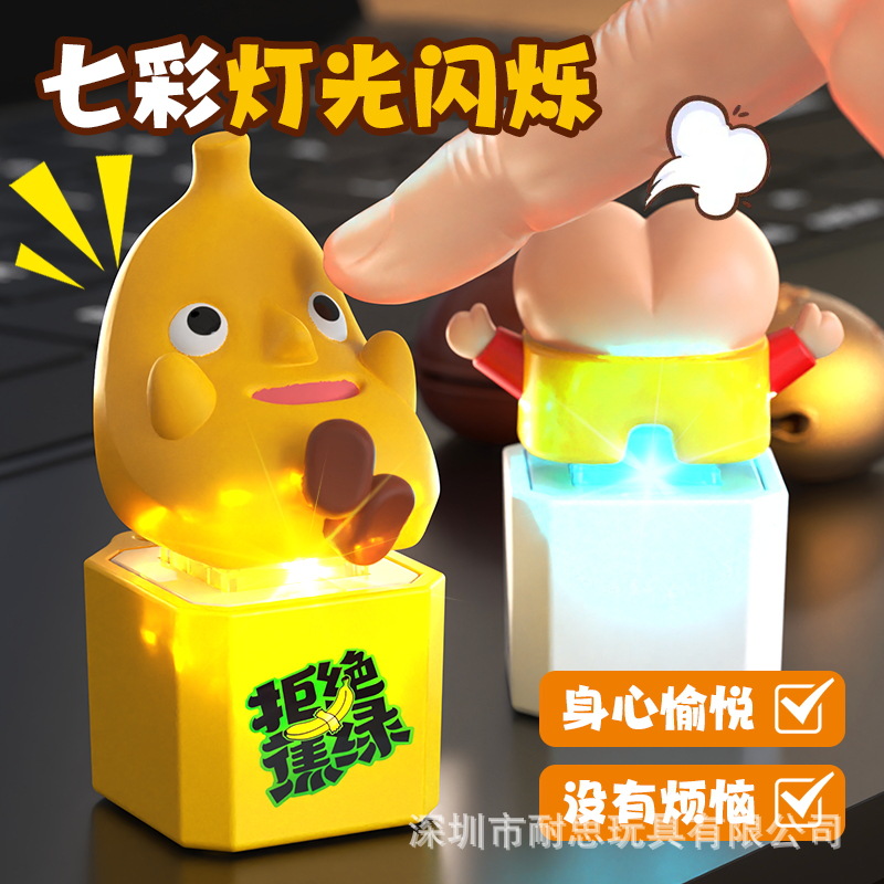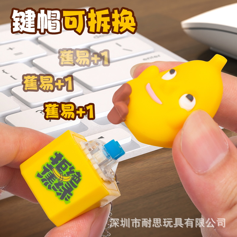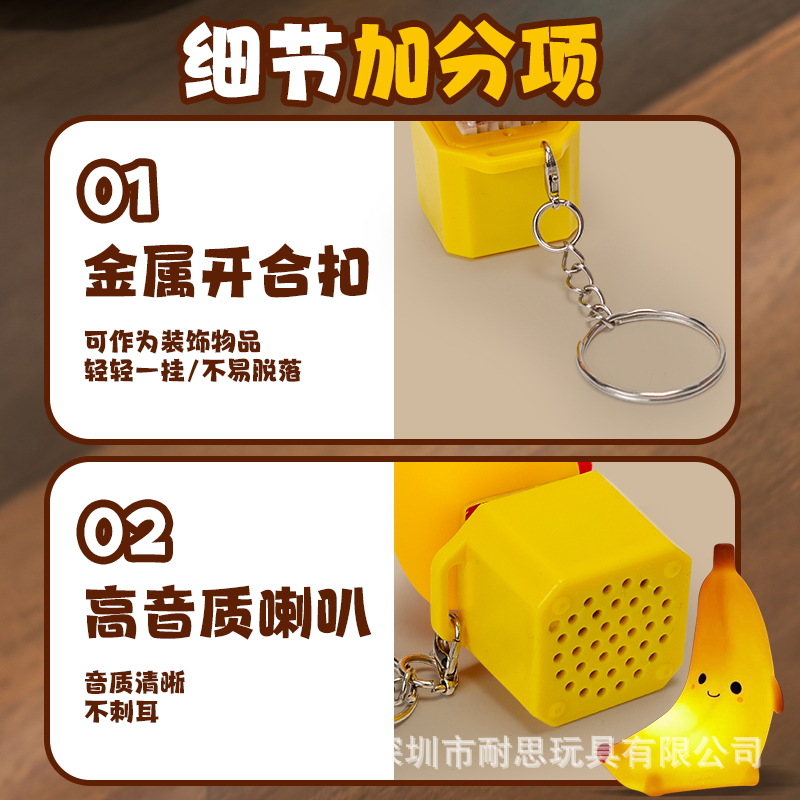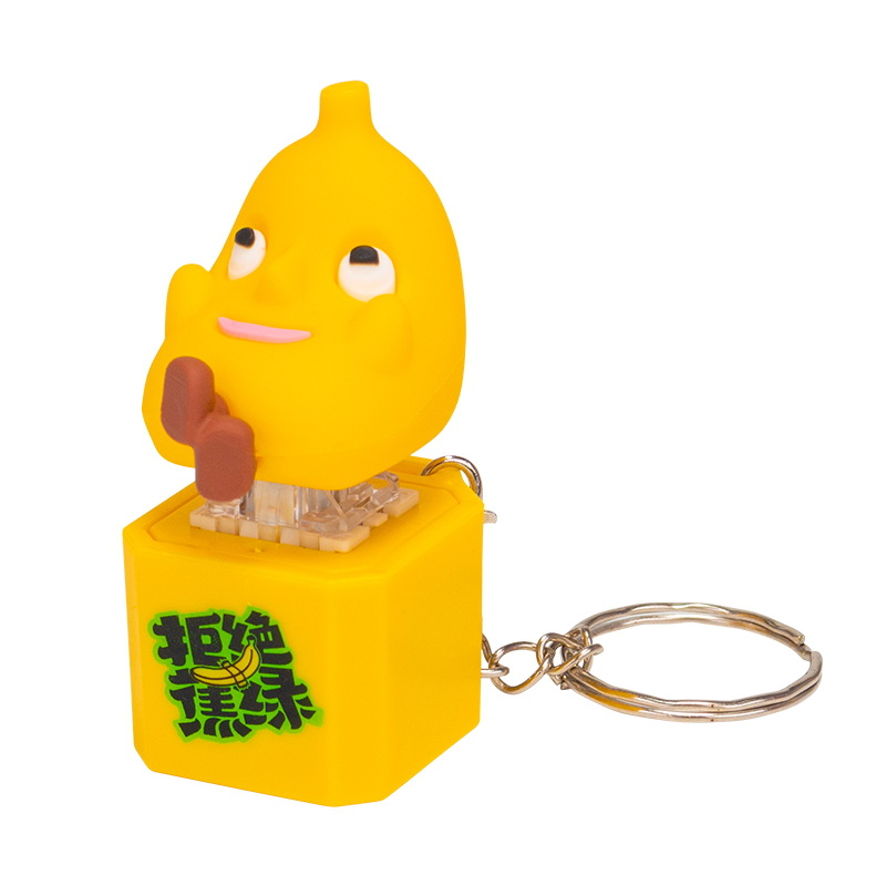 Shake the same big banana key press sound and light detachable key cap ban banana green key chain new strange toy