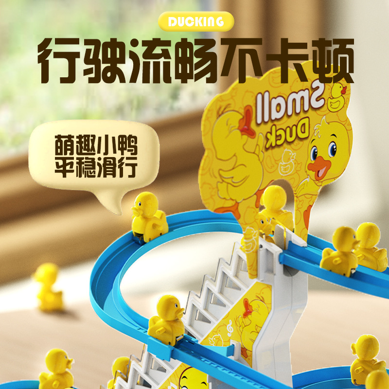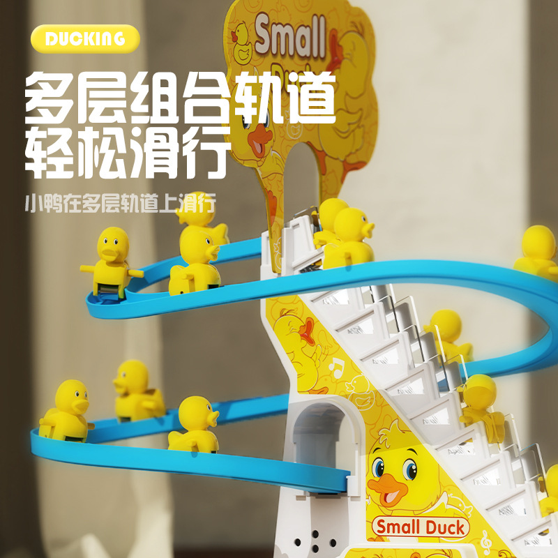 | nameOriginal | Shake the sound of the same little duck climbing the stairs little yellow duck on the stairs slide electric track duck children's toy |