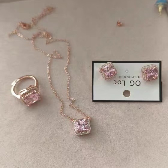 | nameOriginal | Shake Tone Hot New Pink Square Necklace Earrings Ring Fresh Sweet Simple Temperament High-grade Sense |