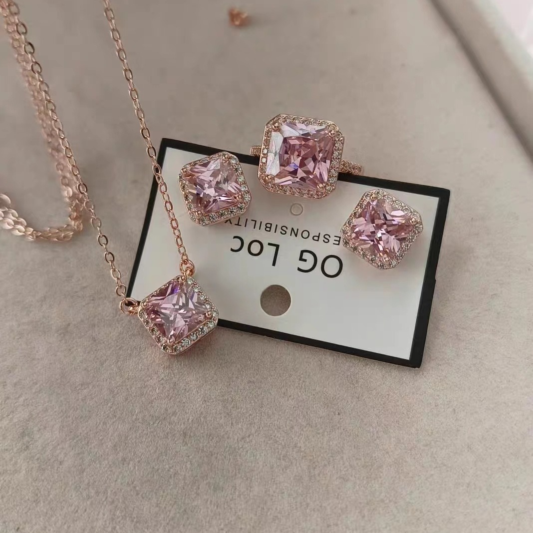| nameOriginal | Shake Tone Hot New Pink Square Necklace Earrings Ring Fresh Sweet Simple Temperament High-grade Sense |