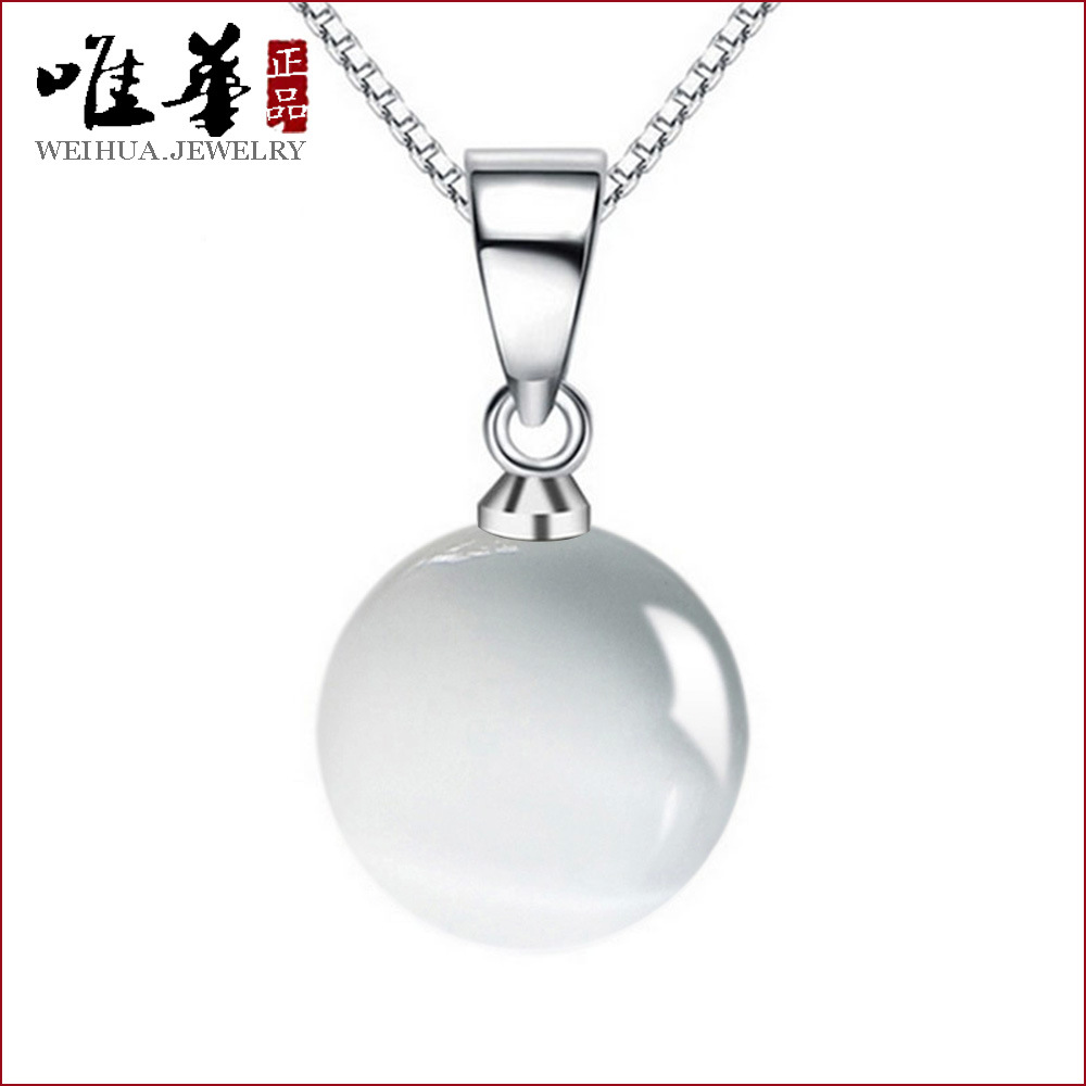 Shake Tone Quick Hand Temperament Korean Fashion OL Water Drop White Cat’s Eye Pendant Silver Plated Necklace Necklace Wholesale Women’s Style