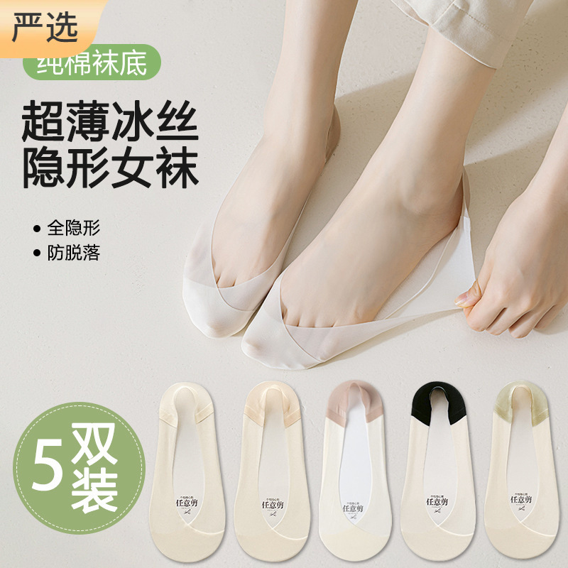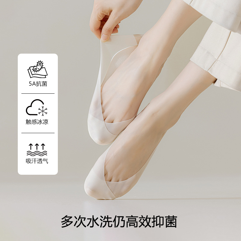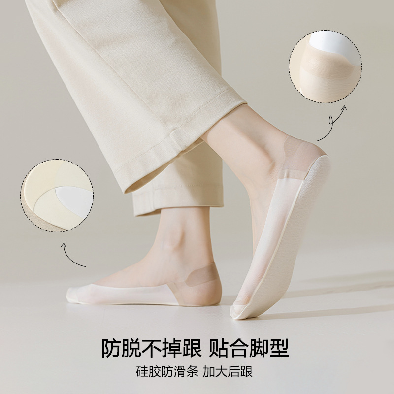 Shallow Mouth Invisible Socks Women's Summer Thin Intersection Non-slip No-fall-off Ice Silk Boat Socks High Heels Single Shoes Socks Women