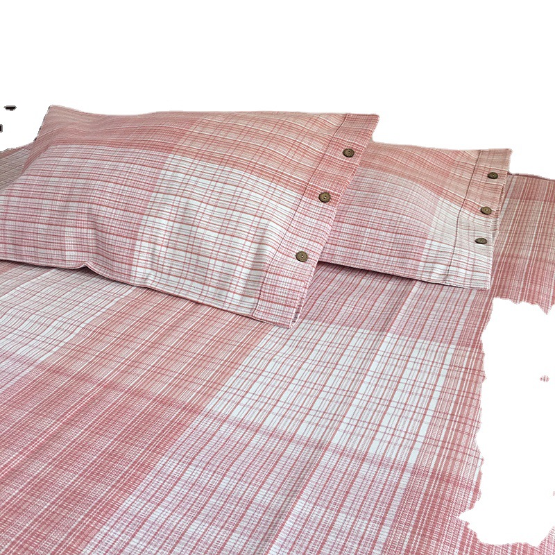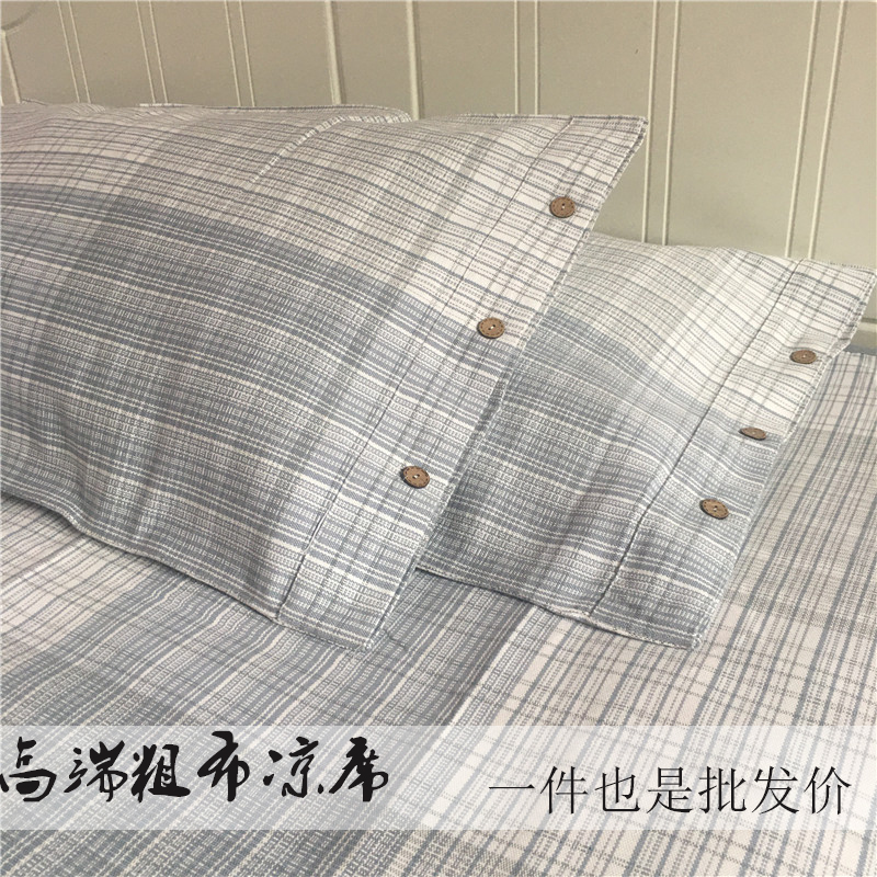 ] Shandong old coarse cloth mat three-piece single double bed sheet summer cool cloth machine washable double-sided mat