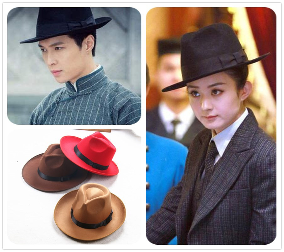 Shanghai Beach Top Hat Jackson Big Along Top Hat Men’s and Women’s Stage British Hat Jazz Wool Felt Hat Old Man