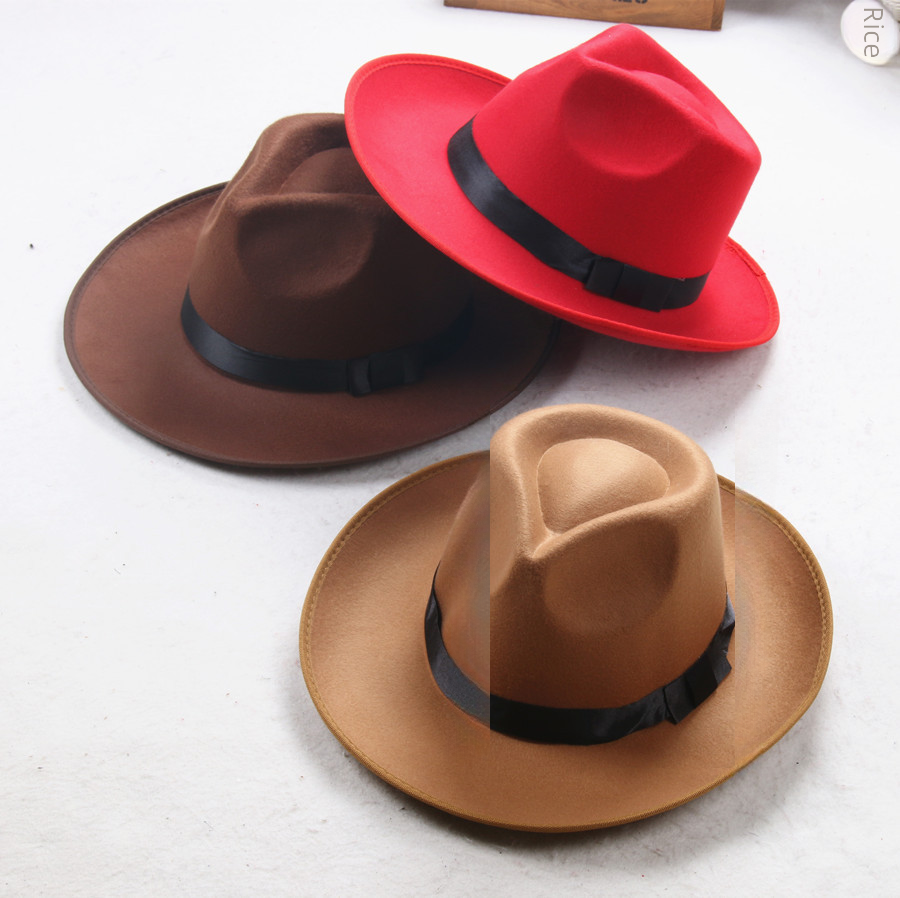 Shanghai Beach Top Hat Jackson Big Along Top Hat Men's and Women's Stage British Hat Jazz Wool Felt Hat Old Man