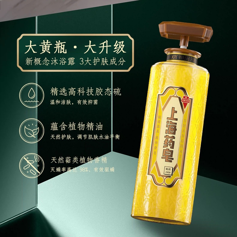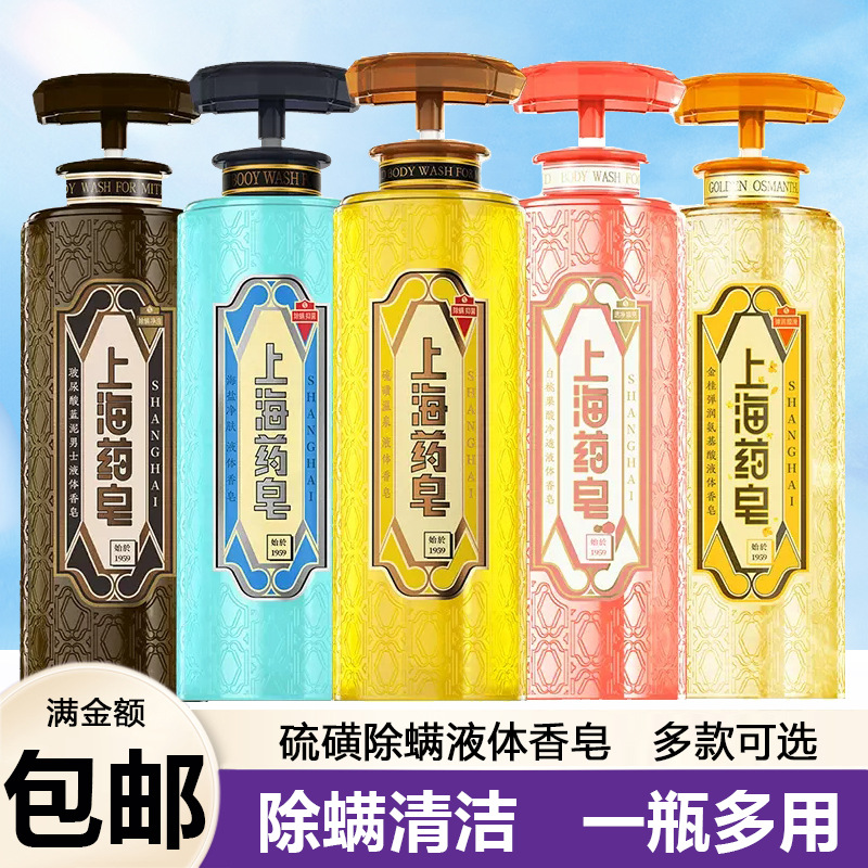 | nameOriginal | Shanghai Medicinal Soap Sulfur Hot Spring Liquid Soap Bacteriostatic Mite Removal Shower Gel Oil Removal Shampoo Bath Washing Men and Women |