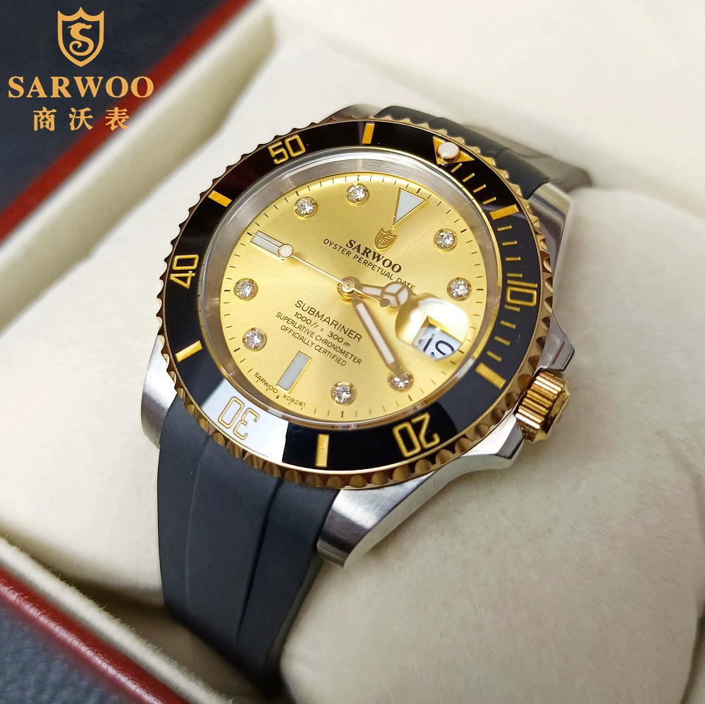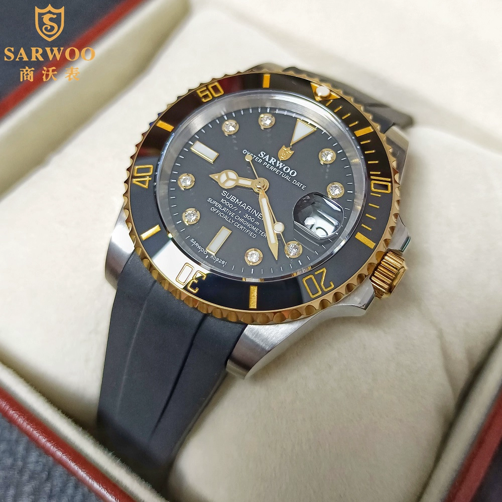 | nameOriginal | Shangwo men's fully automatic mechanical watch waterproof luminous black and green dial Japanese movement gold business water ghost watch |