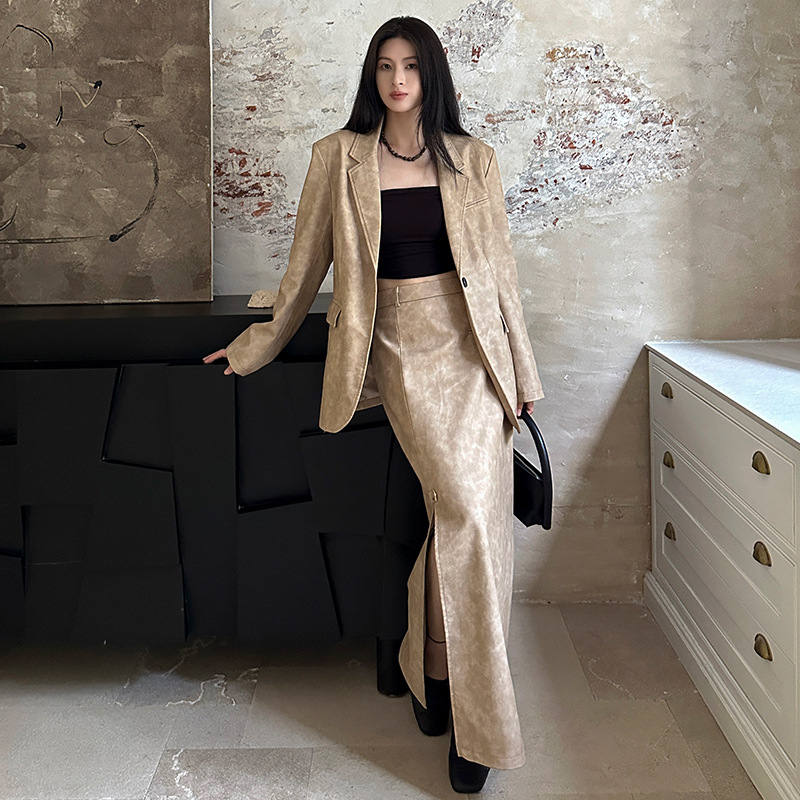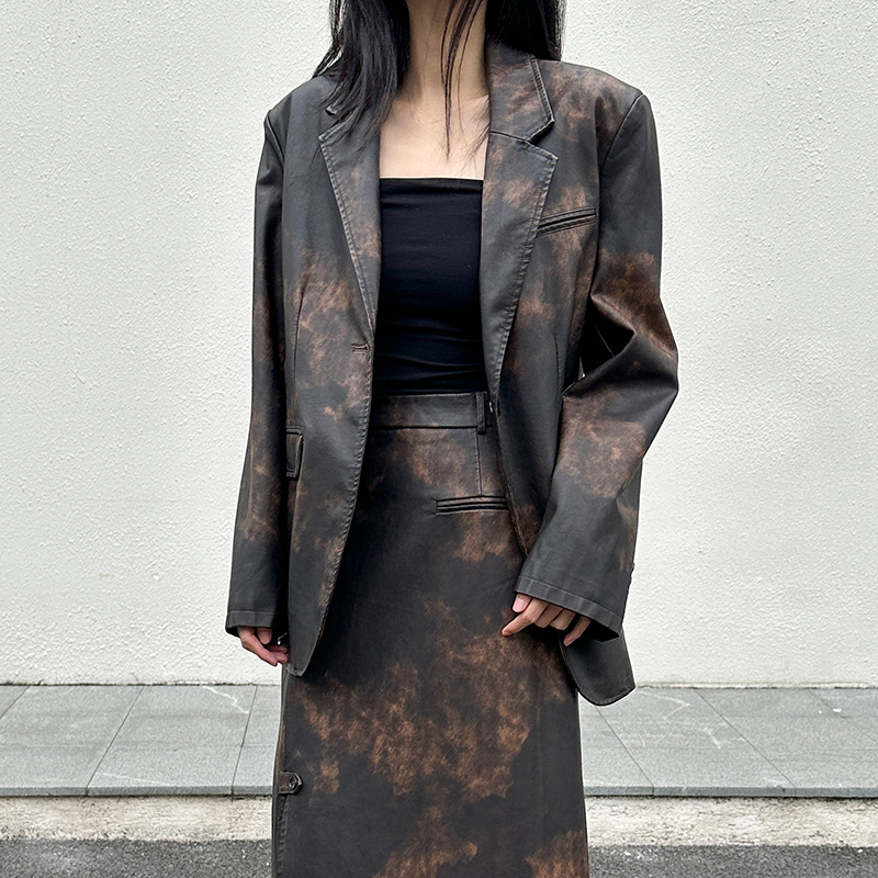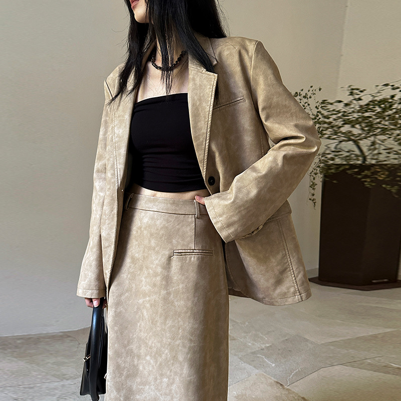 Shangyi 2024 early spring new retro brushed PU leather new Chinese style coat temperament commuter suit top TT2508
