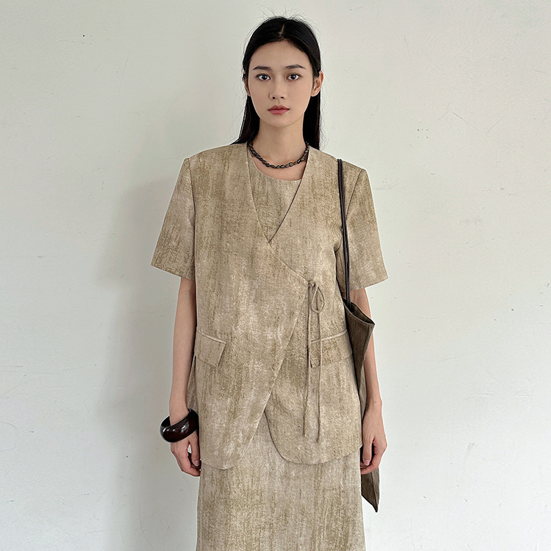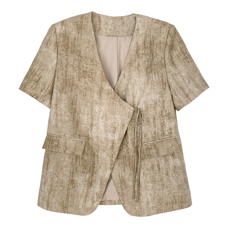 Shangyi Thirteen Lines 2024 Summer New High-end Sense Niche V-neck Suit Short-sleeved Suit Jacket Women's TTS3165